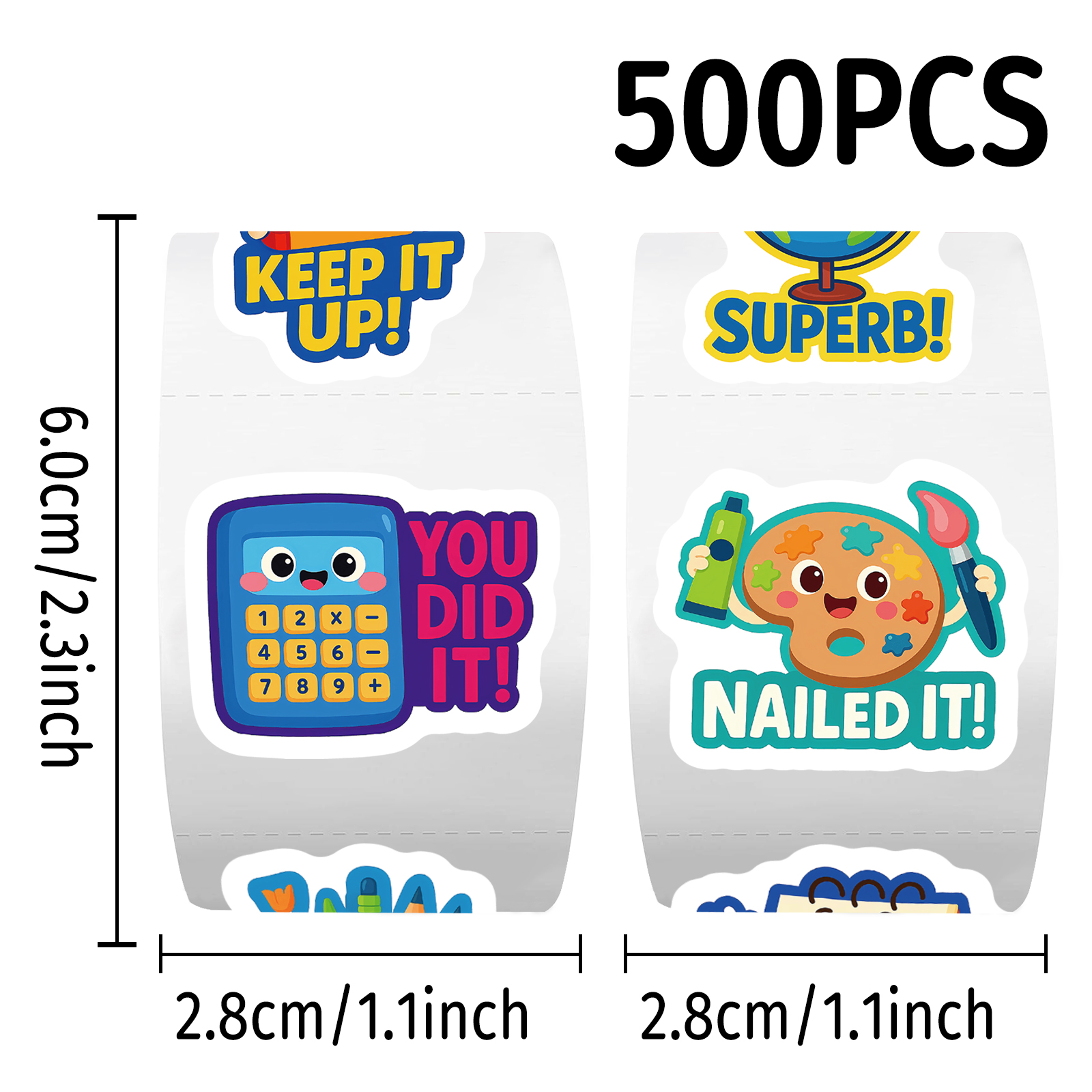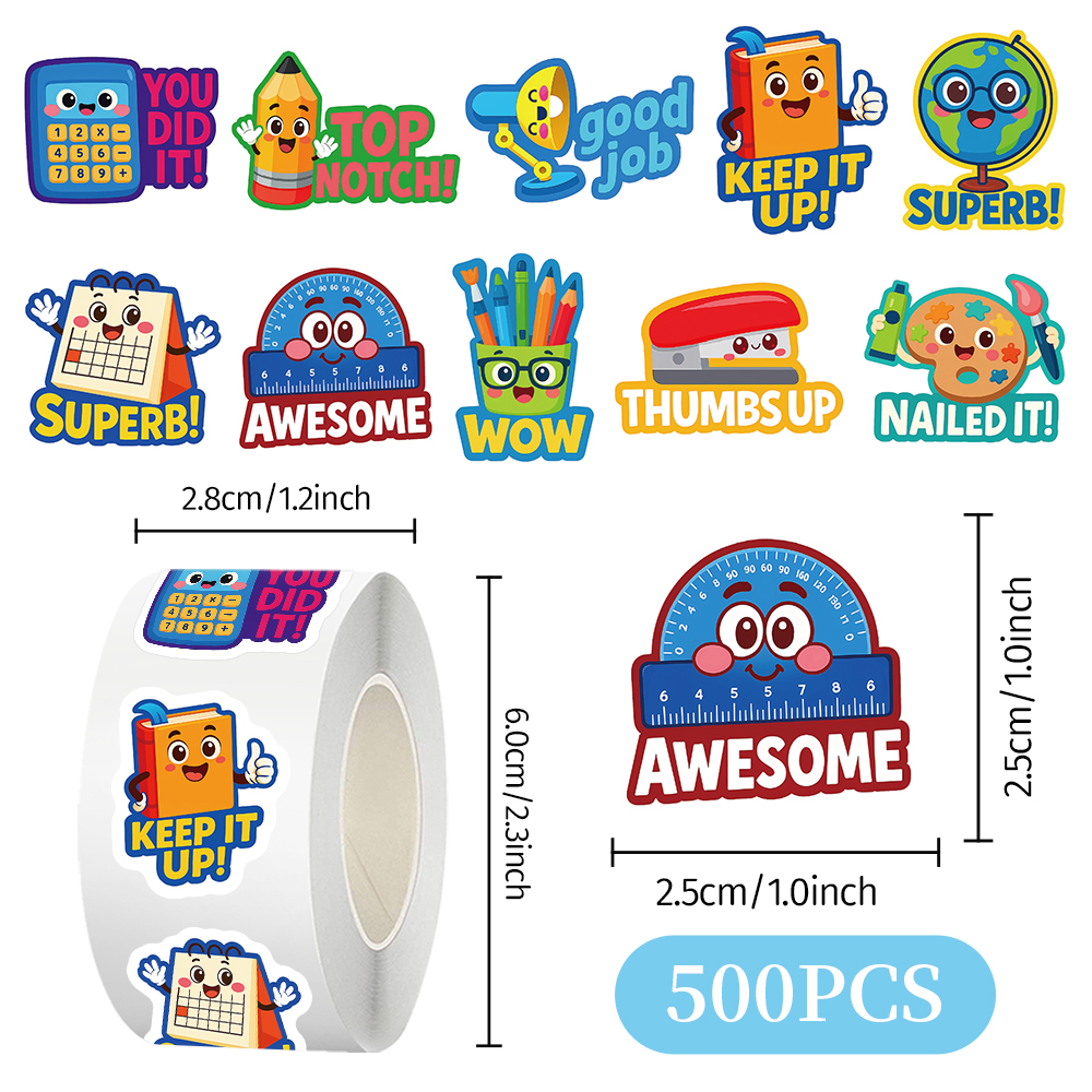 1000贴儿童文具英文奖励卷卷贴计算机铅笔盒日历装饰水杯防水贴画 - 豆豆文创手帐店