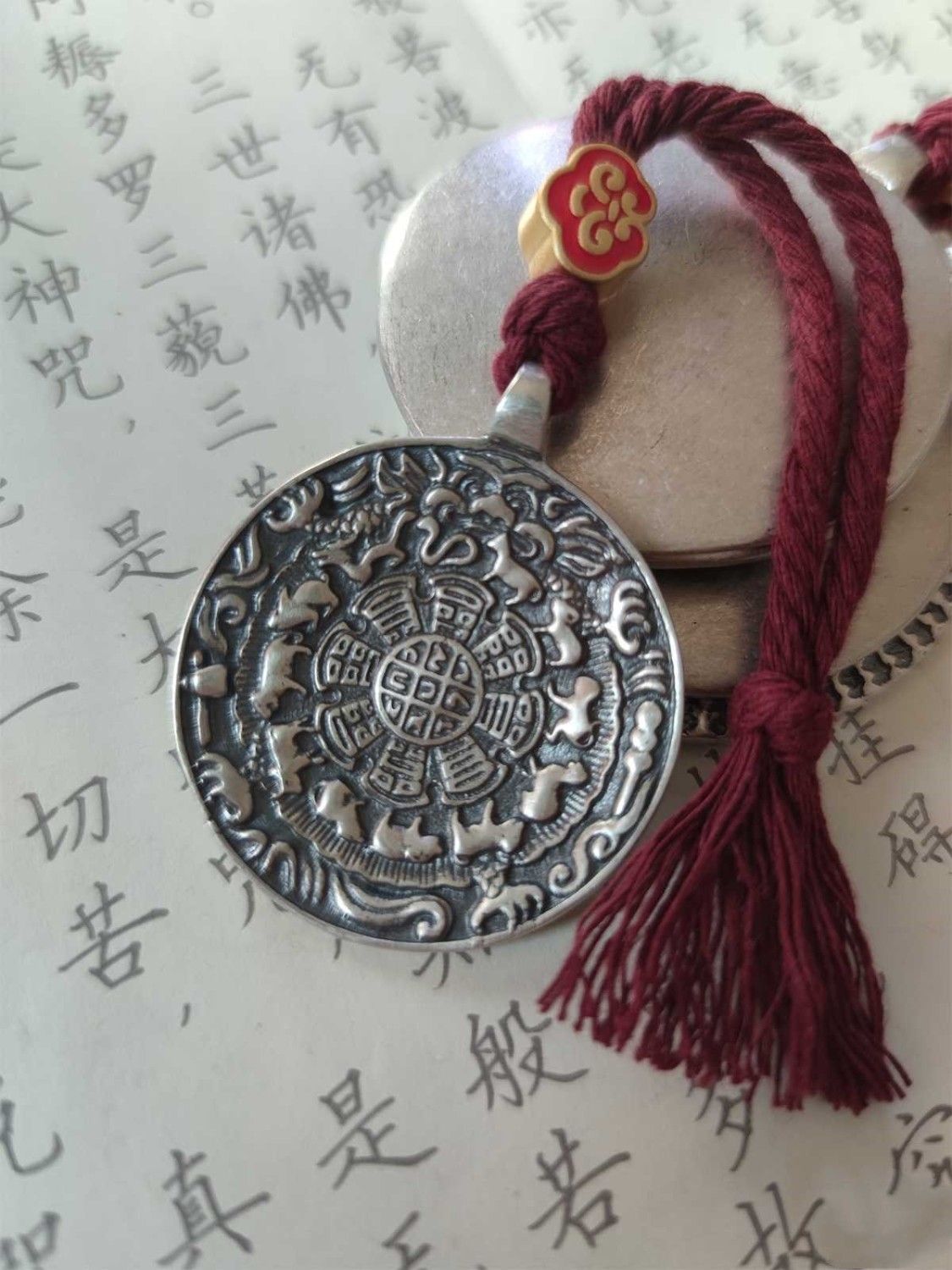 西藏手工纯银头模藏式九宫八卦牌吊坠十二生肖饰品利玛银腰牌挂件 - 朴素文玩