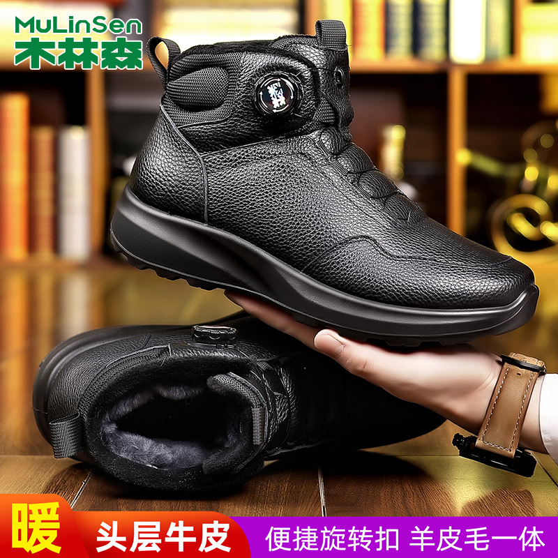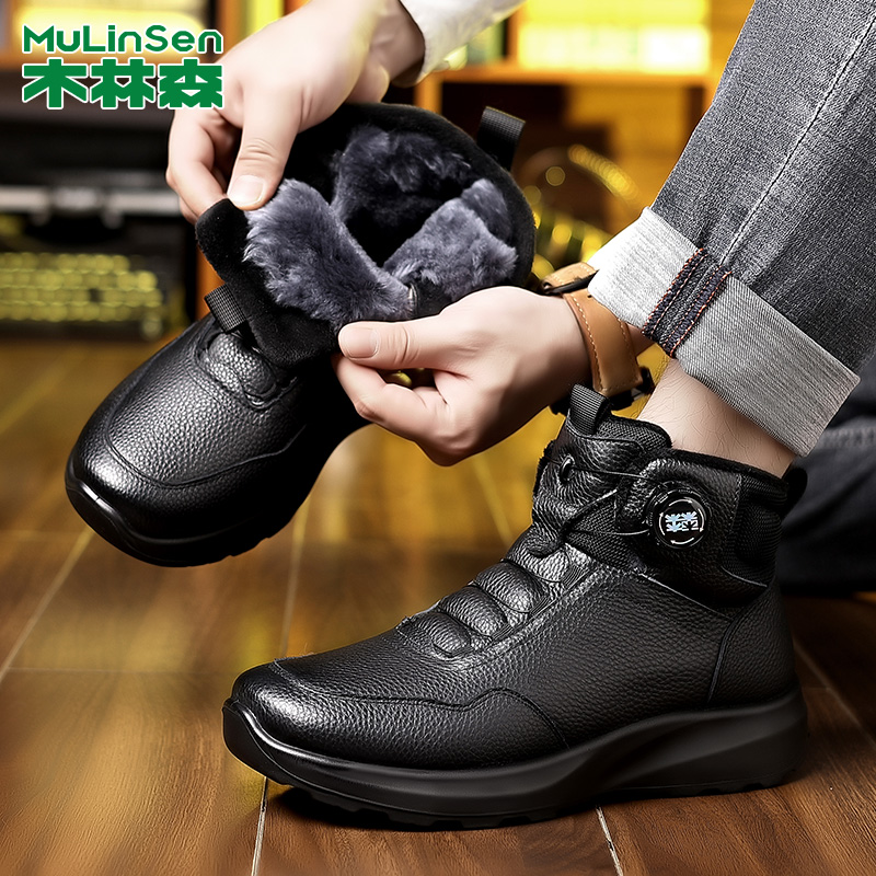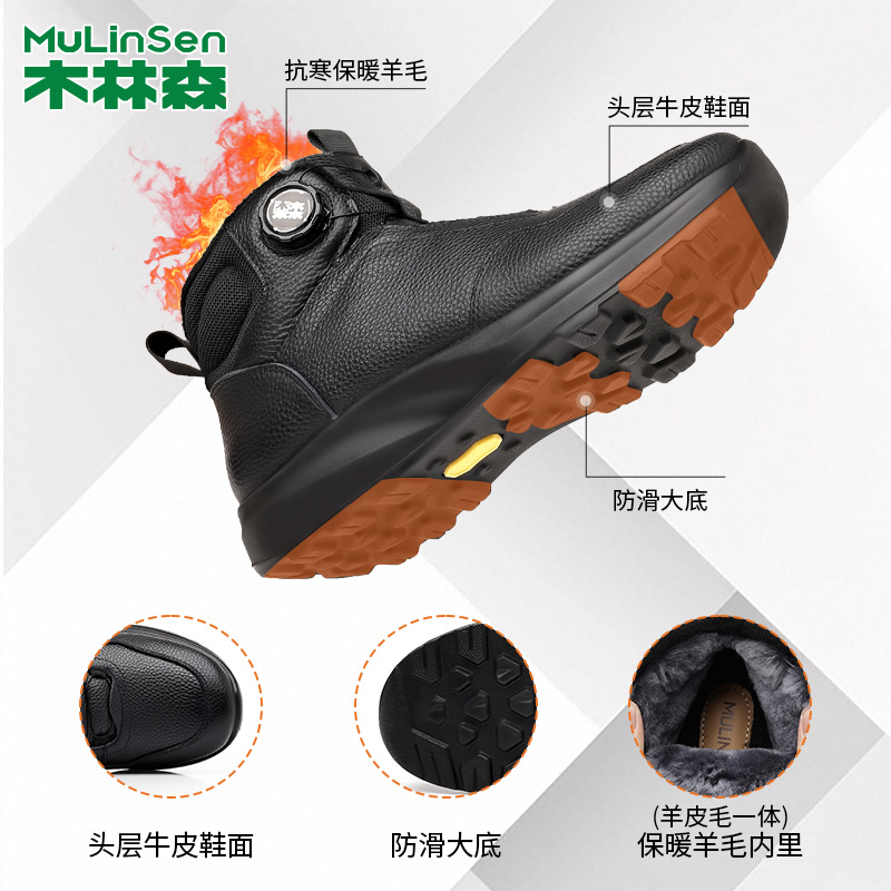 木林森冬季棉鞋男加绒加厚保暖羊皮毛一体棉鞋时尚厚底防滑棉皮鞋 - 木林森足森专卖店