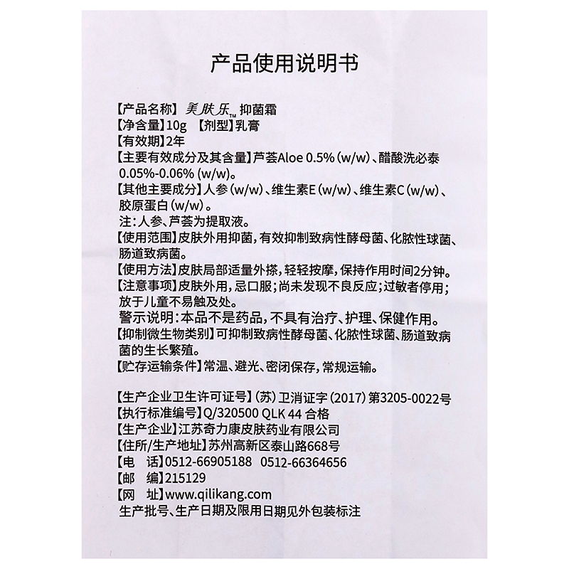 奇力康美肤乐抑菌霜10g植物草本精华皮肤外用清洁抑菌美肤乐霜 - 宏锦旺医疗器械专营店
