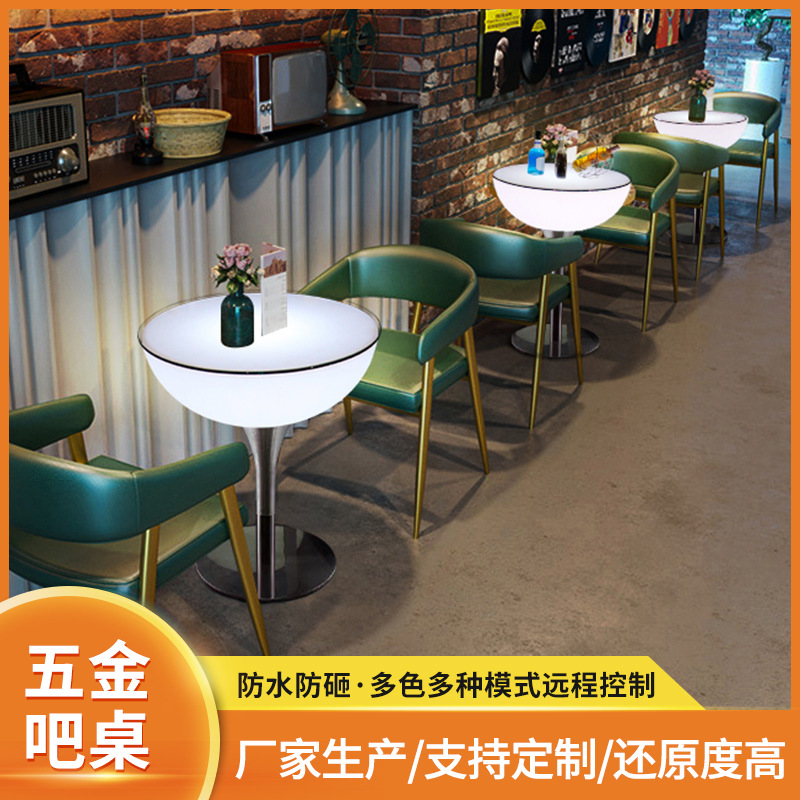 LED现代简约高脚酒吧桌 小蛮腰五金发光圆形吧台桌  户外餐桌酒桌