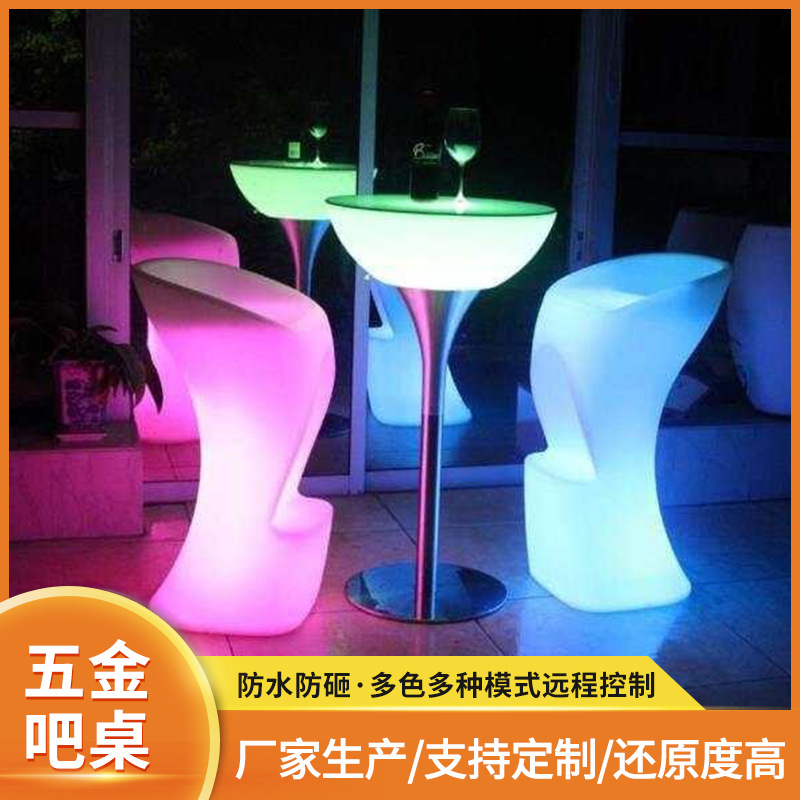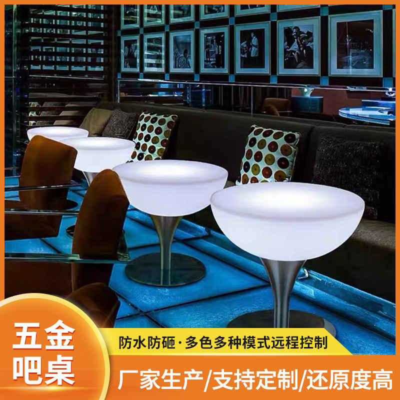 LED现代简约高脚酒吧桌 小蛮腰五金发光圆形吧台桌 户外餐桌酒桌 - tb5692118569