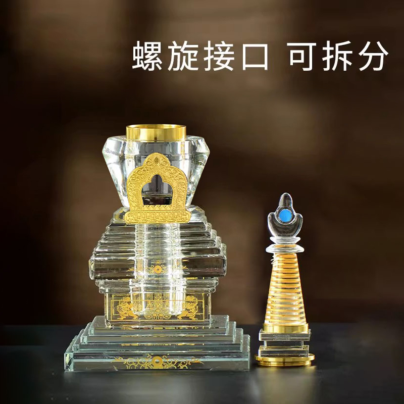 水晶舍利塔佛前舍利塔嘎乌盒佛塔摆件菩提塔噶当塔宝瓶桌面摆件 - 欧斯特旗舰店