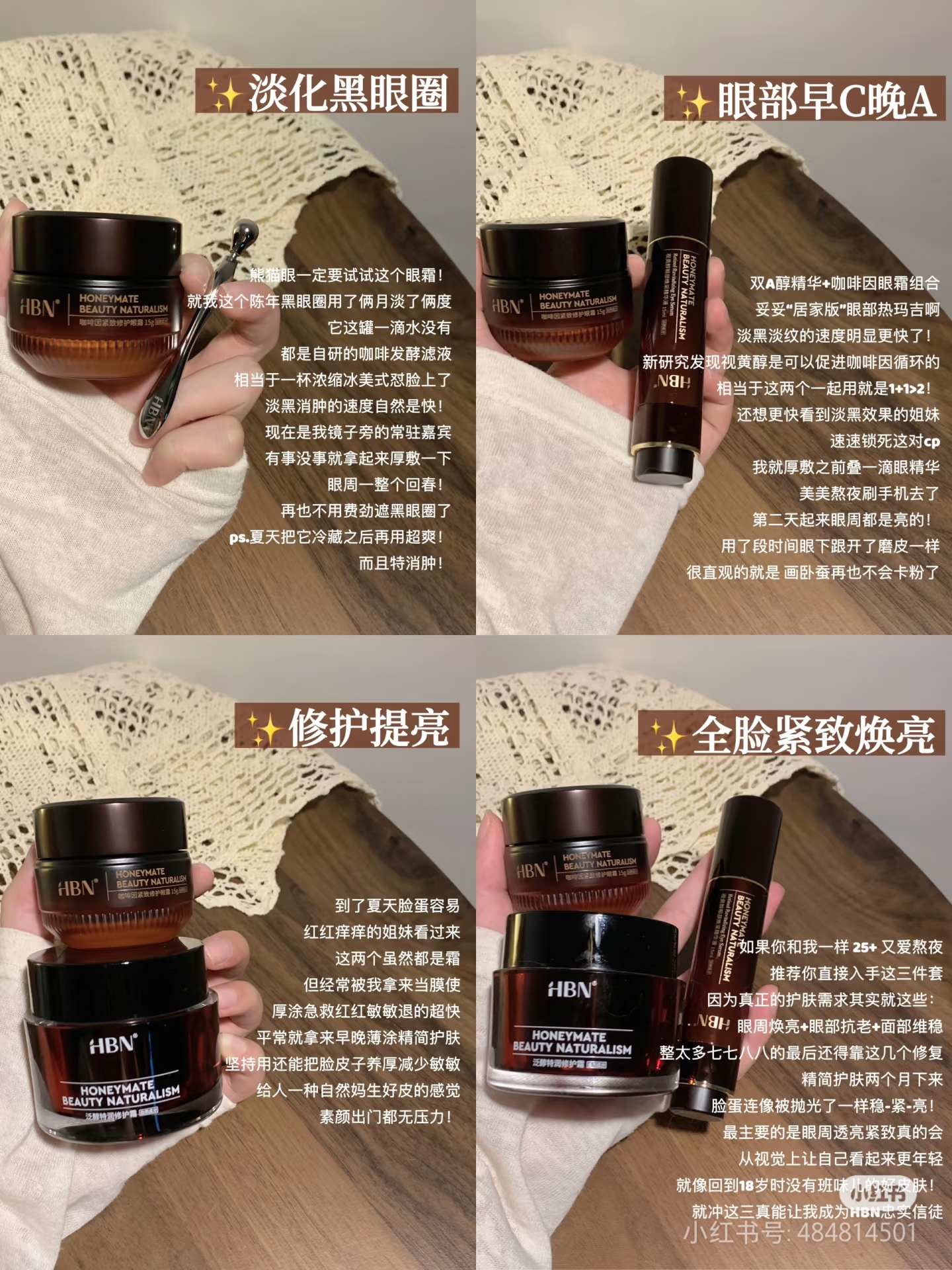 HBN咖啡因眼霜修护精华去黑眼圈
