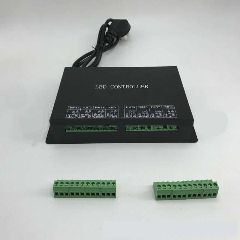 LED全彩灯条控制器H801RC联机八口分控控制器可接TTL和DMX512信号