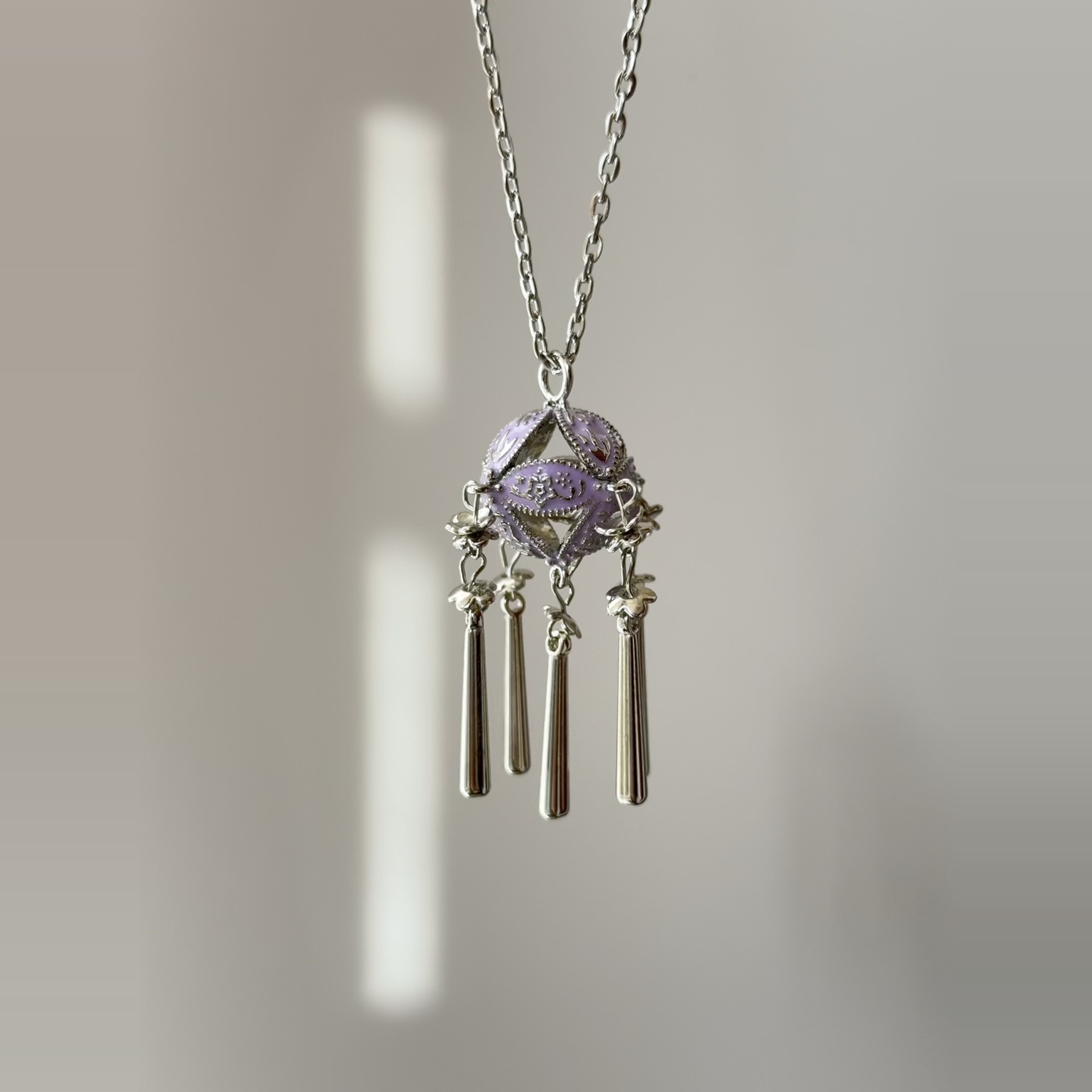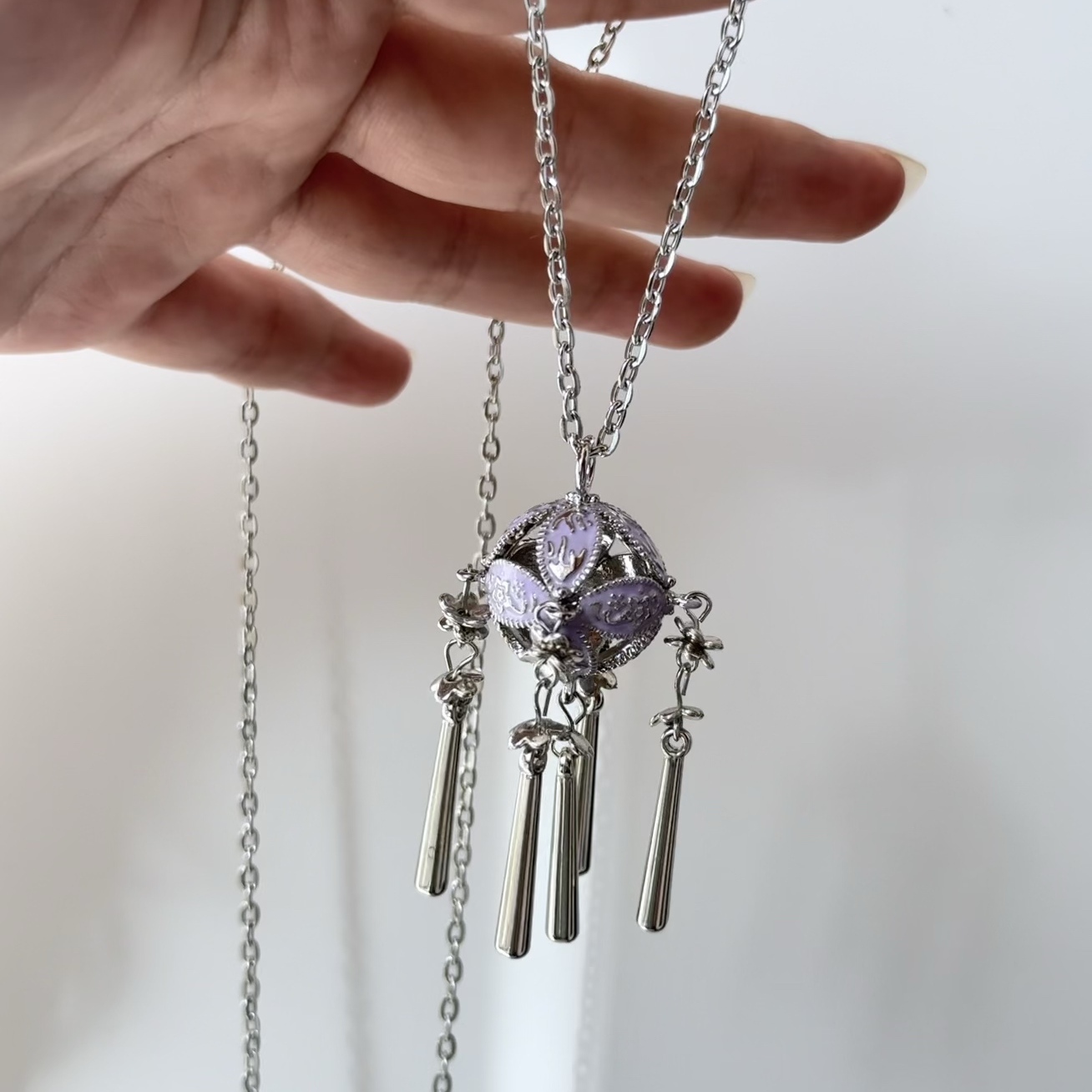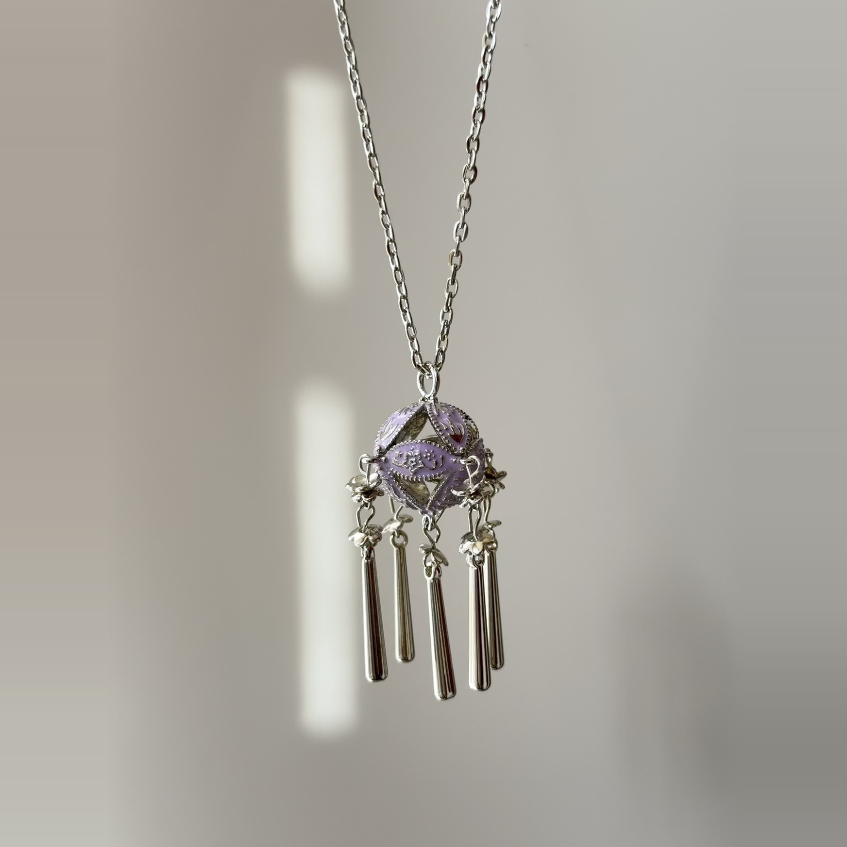 您的位置:他他商城  >   >  开花的橄榄 Vintage古着 Purple Hydrangea紫色绣球花长款项链