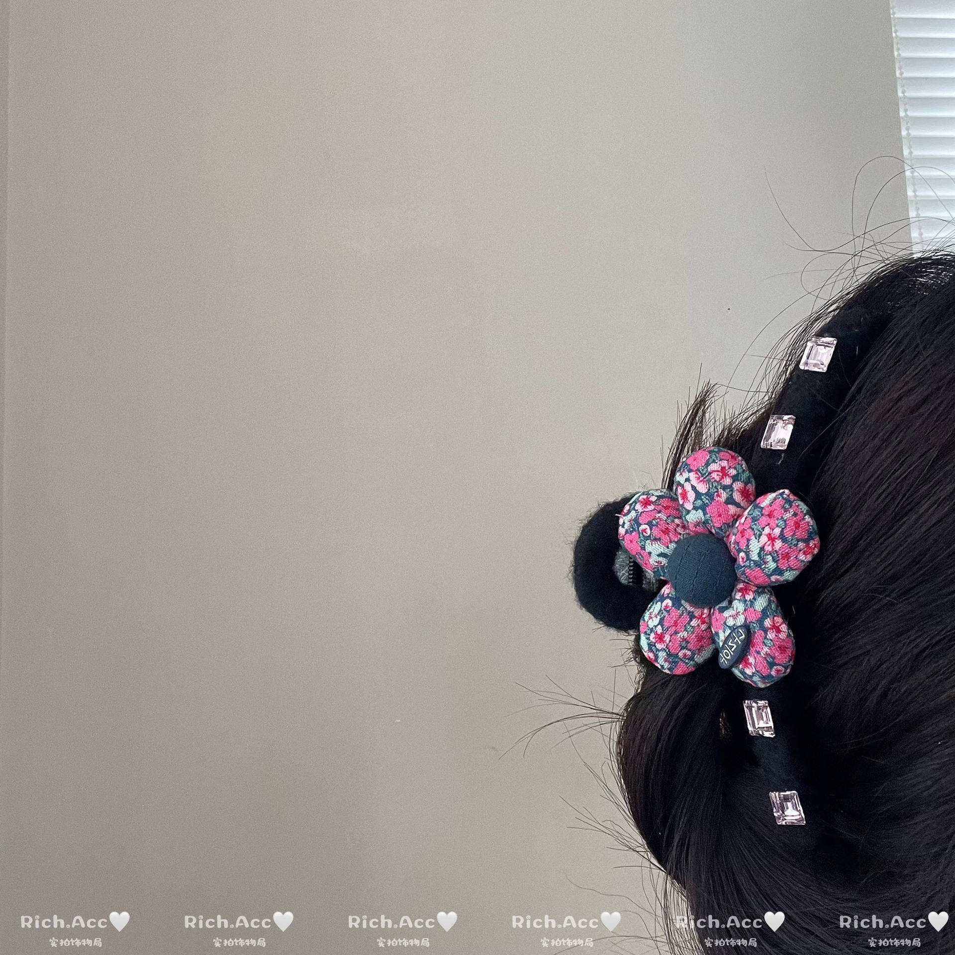 您的位置:他他商城  >  配饰  >  【实拍】韩版布艺碎花花朵灰色拼接闪钻大号发抓田园风温柔鲨鱼夹
