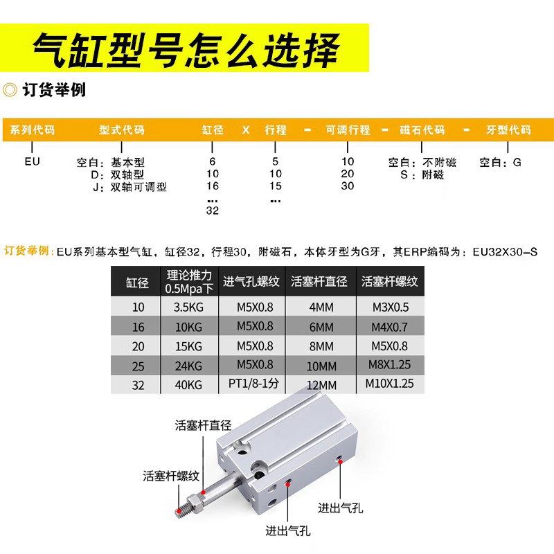 亿太诺气缸EU6/10/16/20/25/32X5X10X15X20X30X40X50X75X80X100-S - 南阳卧龙铺