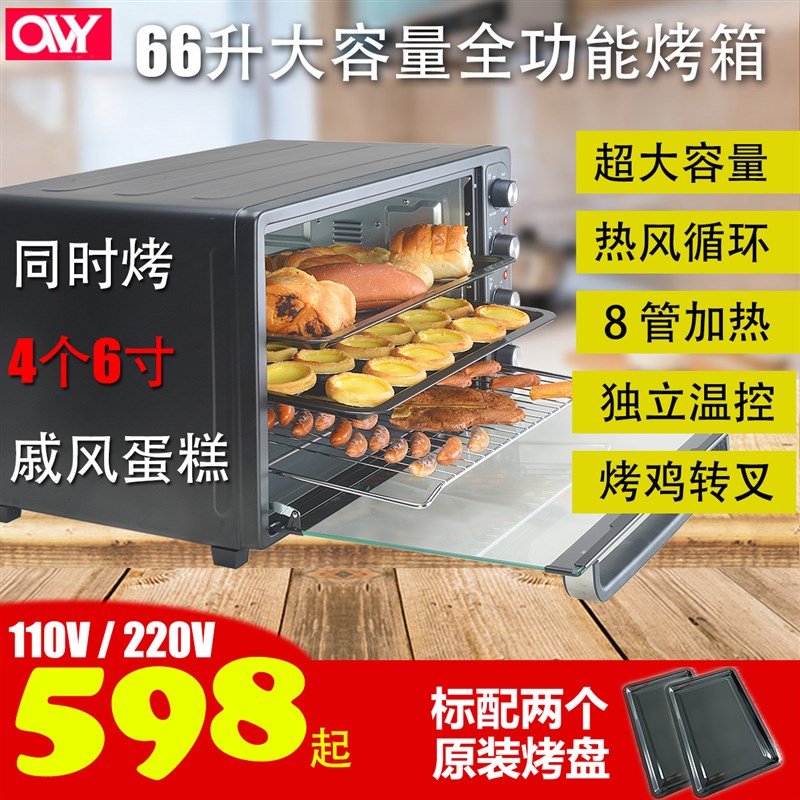 110V伏66升大容量电烤箱家商船用出口烤炉全功能热风转叉独立温控