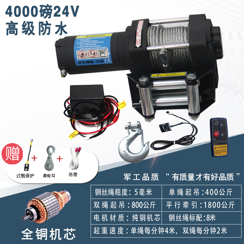 电动绞盘a12V越野车自救汽车绞盘24V电动葫芦卷扬机车载小吊机提 - 月泰行日用品