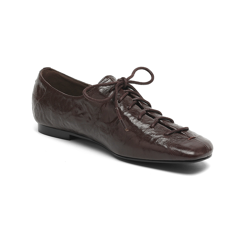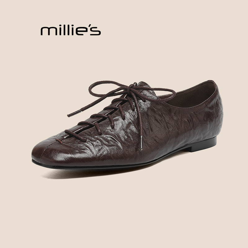 MILLIE'S/妙丽秋款小众设计百搭方头真皮系带芭蕾舞鞋平底小皮鞋Z - MILLIES妙丽嵩正专卖店