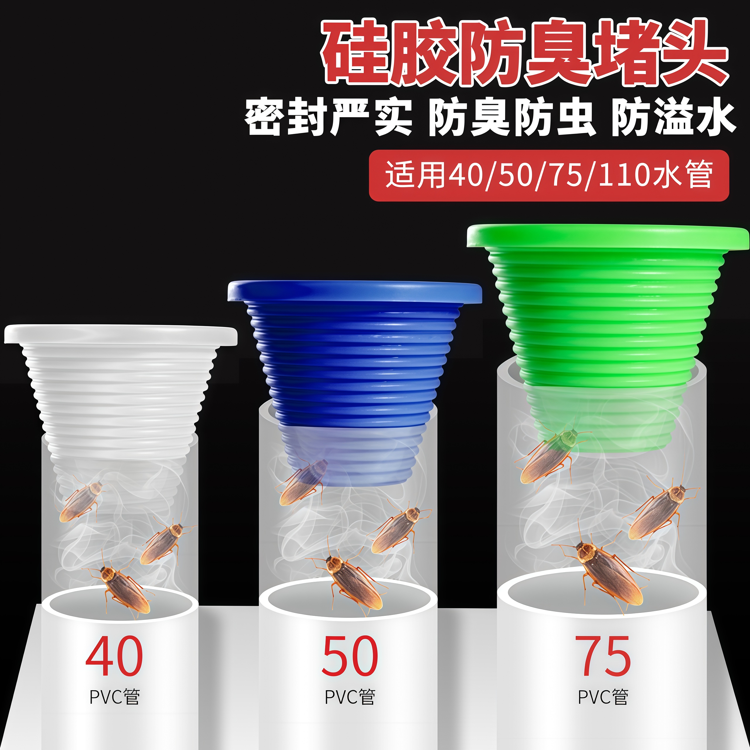 下水道堵头硅胶防臭密封圈PVC管水池出水口装饰堵盖地漏皮塞头子 - 优优百货 YOYO