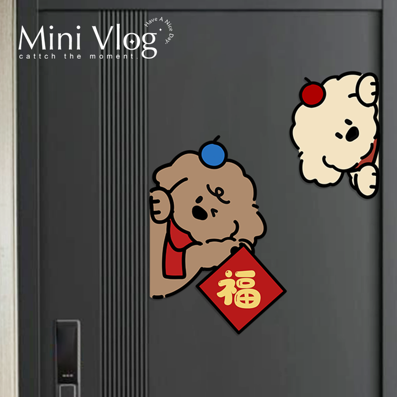 小狗送福乔迁新居布置装饰用品玻璃门贴纸遮丑新家入户福字门贴 - PoPo猫美学家