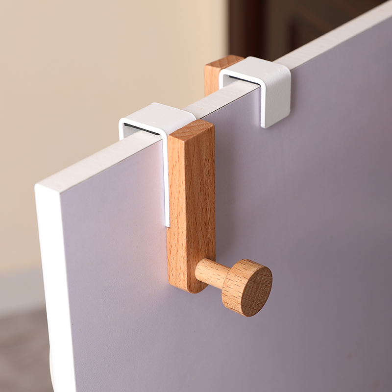 木质卡夹挂钩抽屉衣橱柜门缝收纳钩无痕免打孔铁艺简约门背式挂架