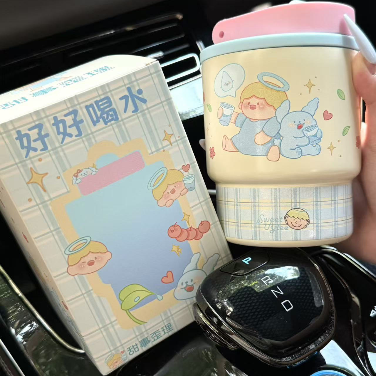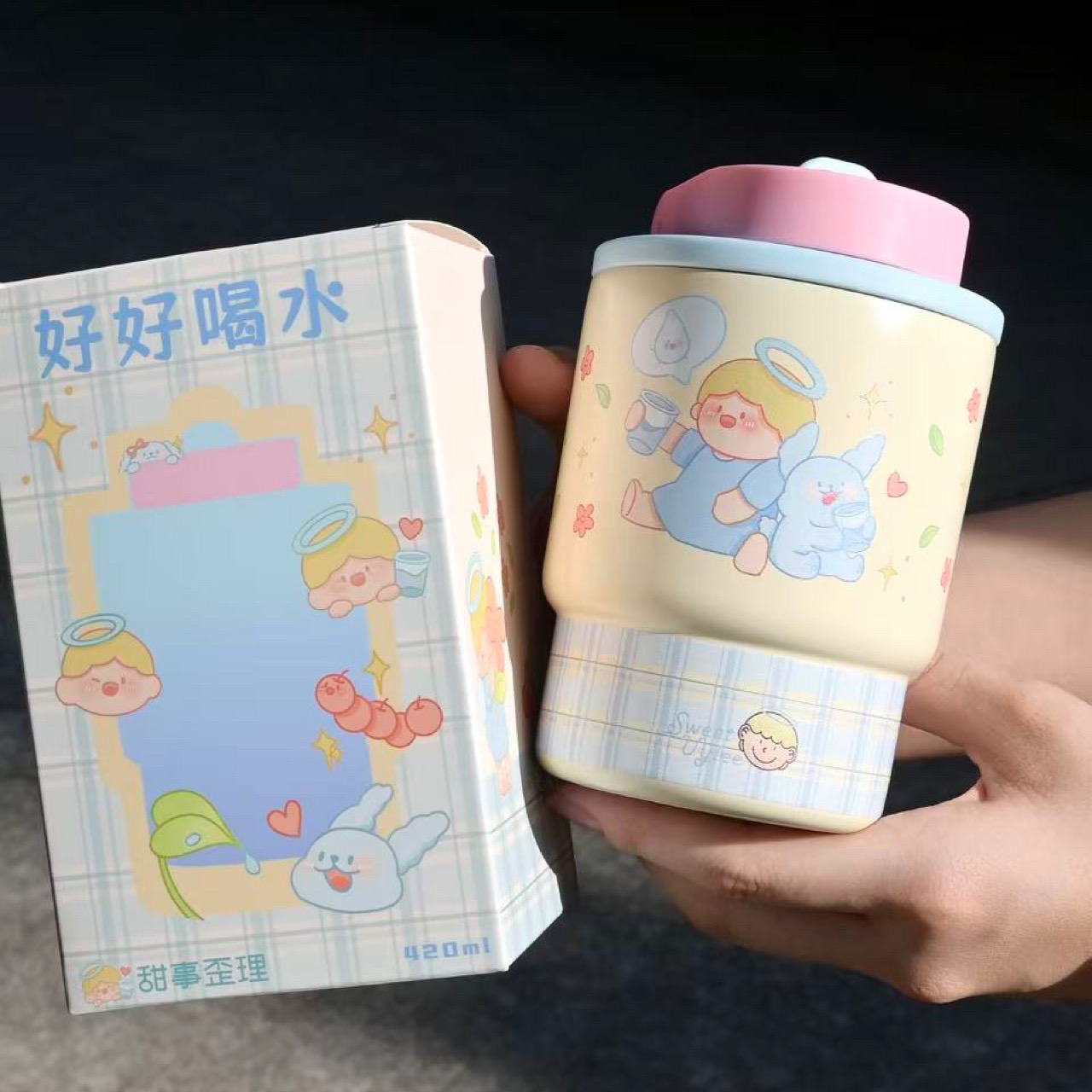 甜事歪理可爱水杯女生高颜值双饮带吸管耐高温保温杯学生咖啡杯子