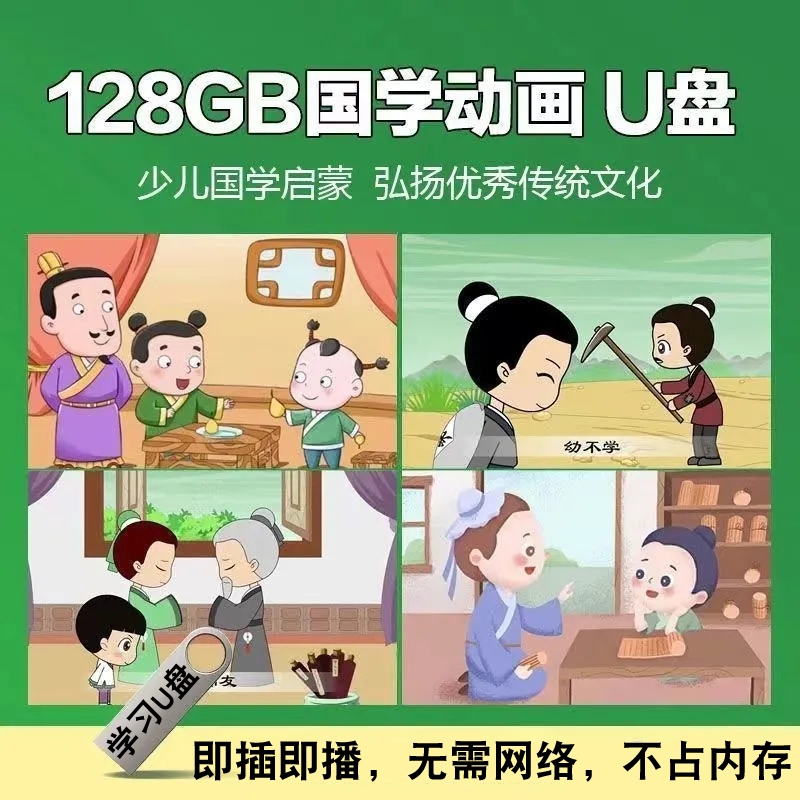 儿童国学早教视频车载动画片U盘全集三字经弟子规唐诗宋词论语 - 天睿书馆店