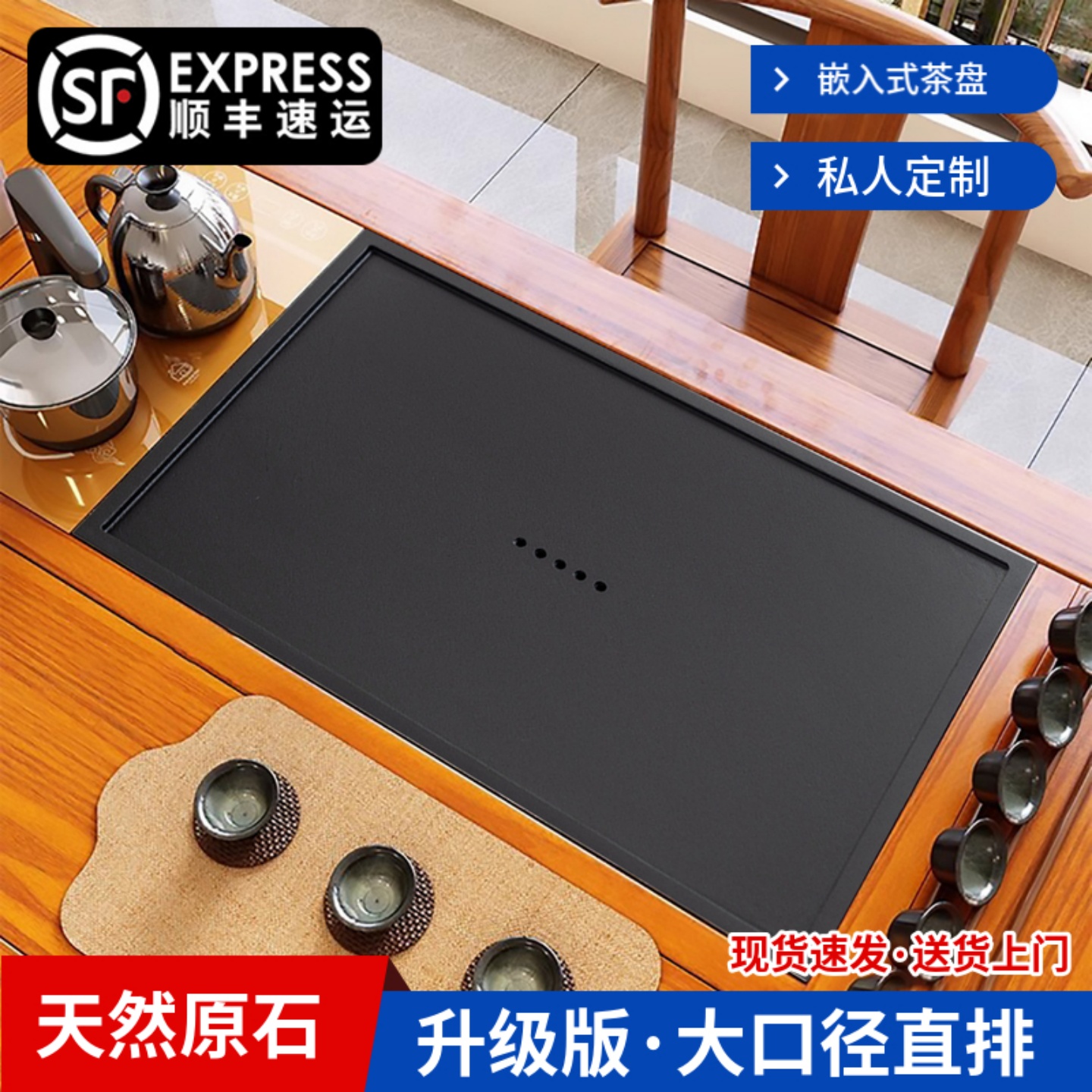 茶盘嵌入式家用乌金石天然石整块石头客厅中式茶几茶台漏水板定做 - 岩茶石器