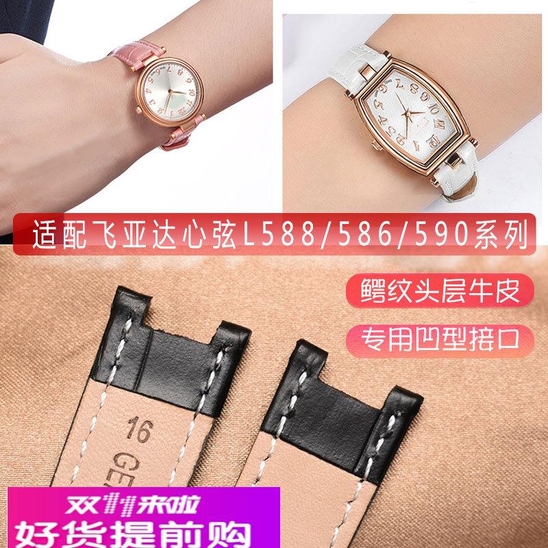适用原厂女真皮手表带飞亚达心弦L588586590系列凹口蝴蝶扣表链14