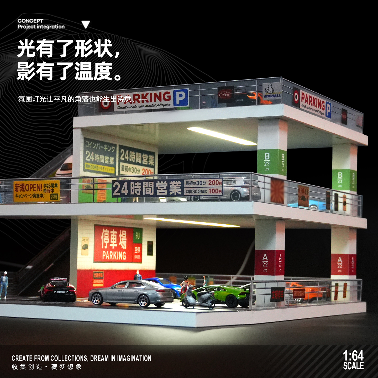 收藏家1:64日式坡道停车场微缩场景仿真建筑模型合金车模展示架 - 烁今车模