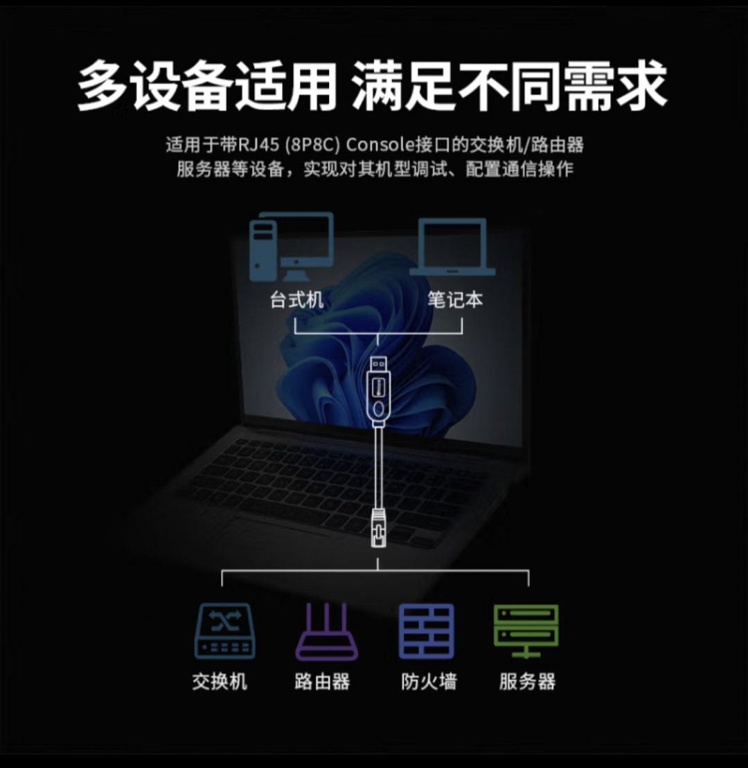 毕亚兹 Console调试线 USB转RJ45网口线适用思科华为服务器转换线