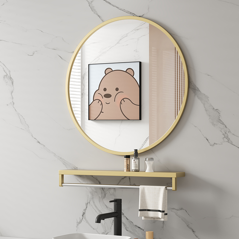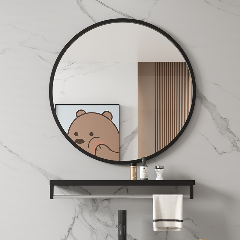 浴室镜挂墙式家用卫生间镜子玻璃免打孔壁挂化妆镜洗手台带置物架