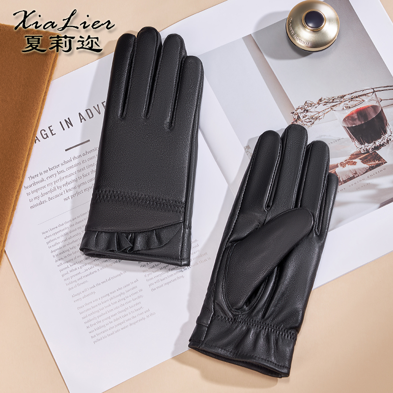 真皮手套女士羊皮手套骑车冬季保暖加绒骑行电动车触屏皮手套薄款 - 夏莉迩品牌自营店