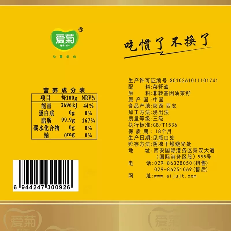 爱菊三级菜籽油 油泼辣子、油泼面、凉皮、调味油 大桶5L - 爱菊粮油企业店