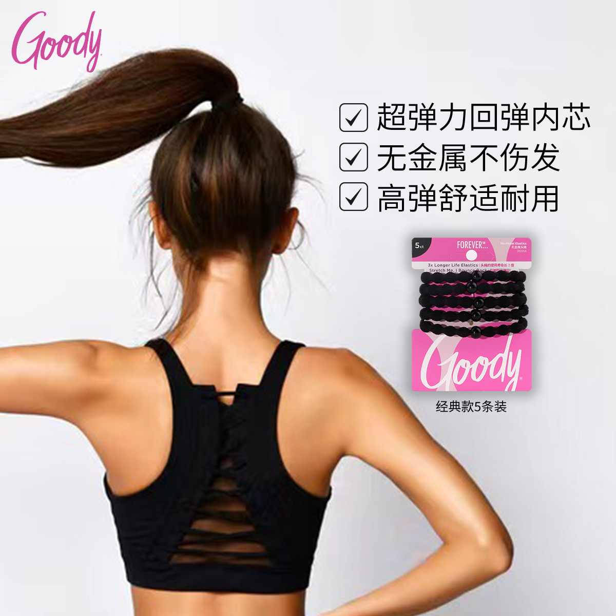 Goody歌妮豌豆发圈经典款高马尾扎发神器橡皮筋运动发绳头绳正品