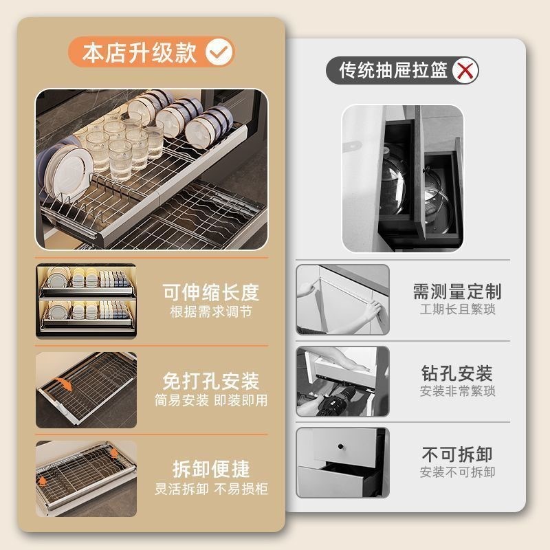不锈钢厨房柜抽屉内置碗架抽拉碗碟架整体橱柜拉篮O碗篮碗盘收纳 - 翠李馆日用品的小店41