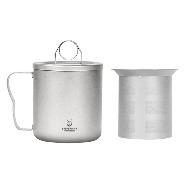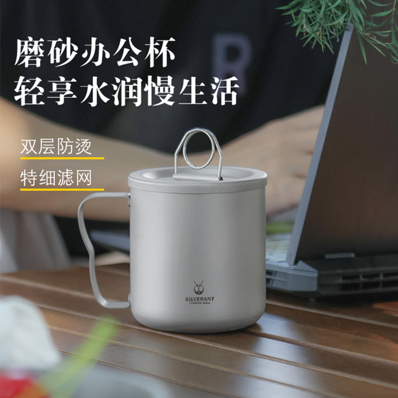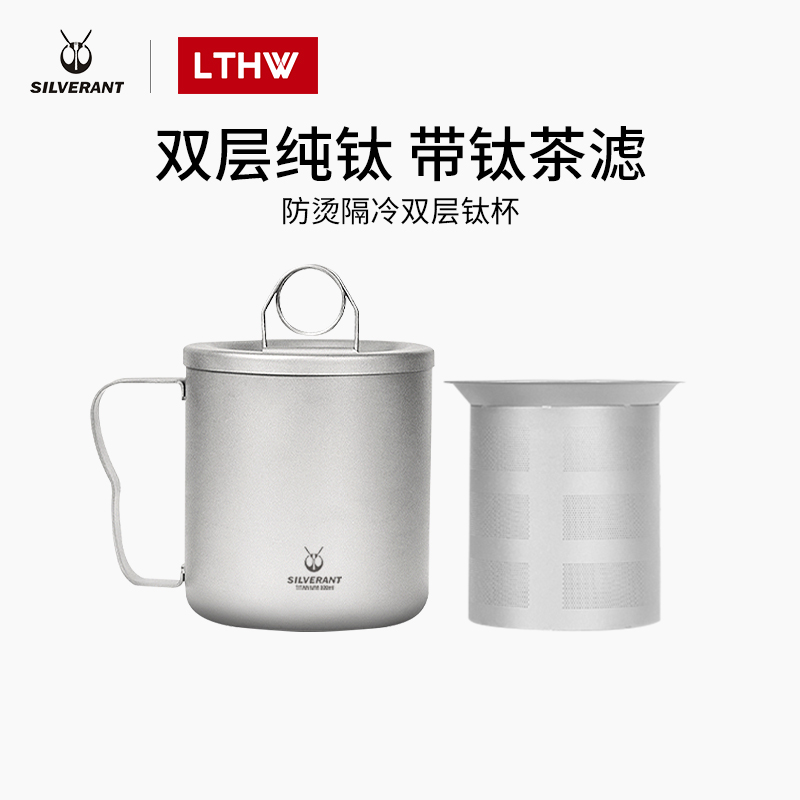 银蚁纯钛双层水杯茶杯钛金属泡茶器户外露营钛水杯带过滤网防烫杯 - 绿腾户外专营店