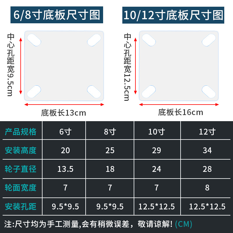 万向轮超重型10寸重型手推车脚轮承重橡胶轱辘N12板车轮子载重3吨 - 川汇区欣然百货店