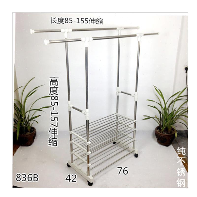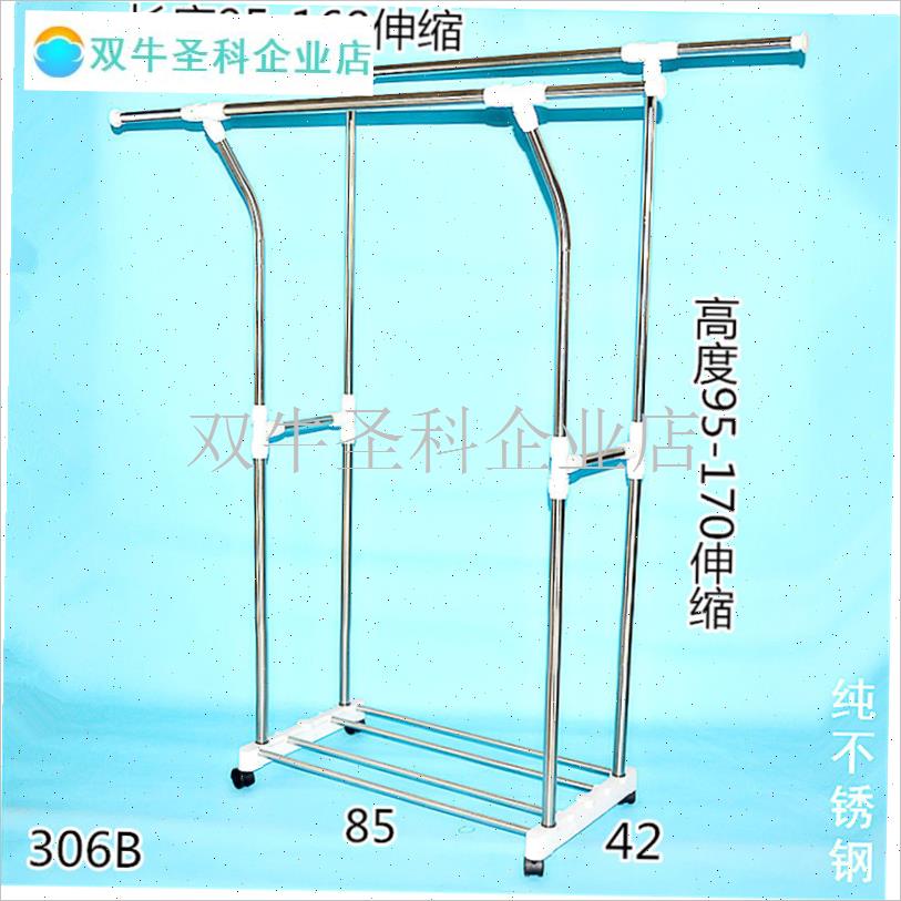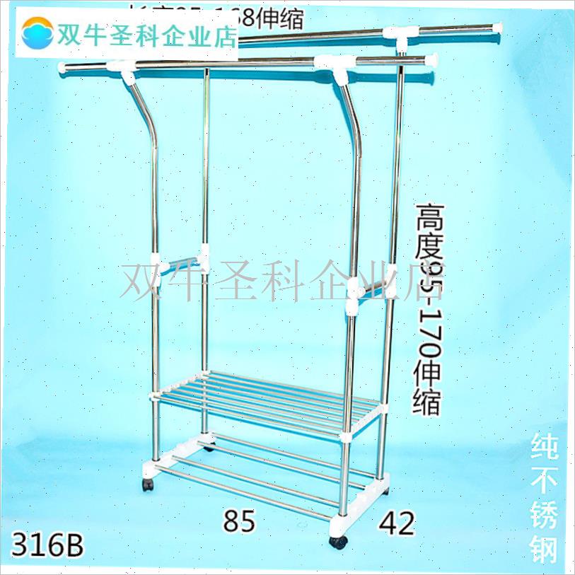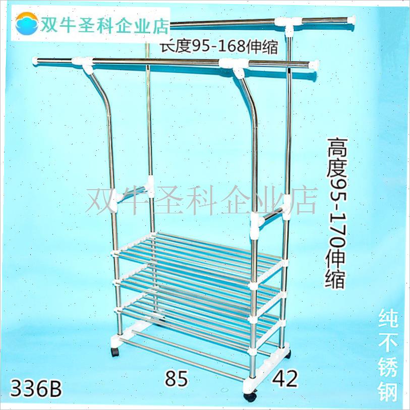 不锈钢双杆伸缩晾衣架带置物架鞋C架毛巾架落地式晾晒架可移动升. - 双牛圣科企业店