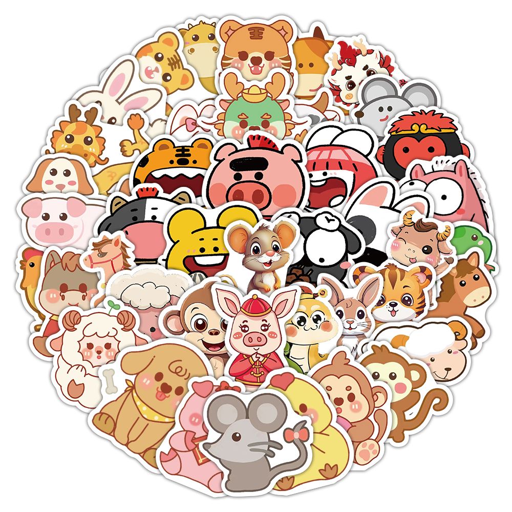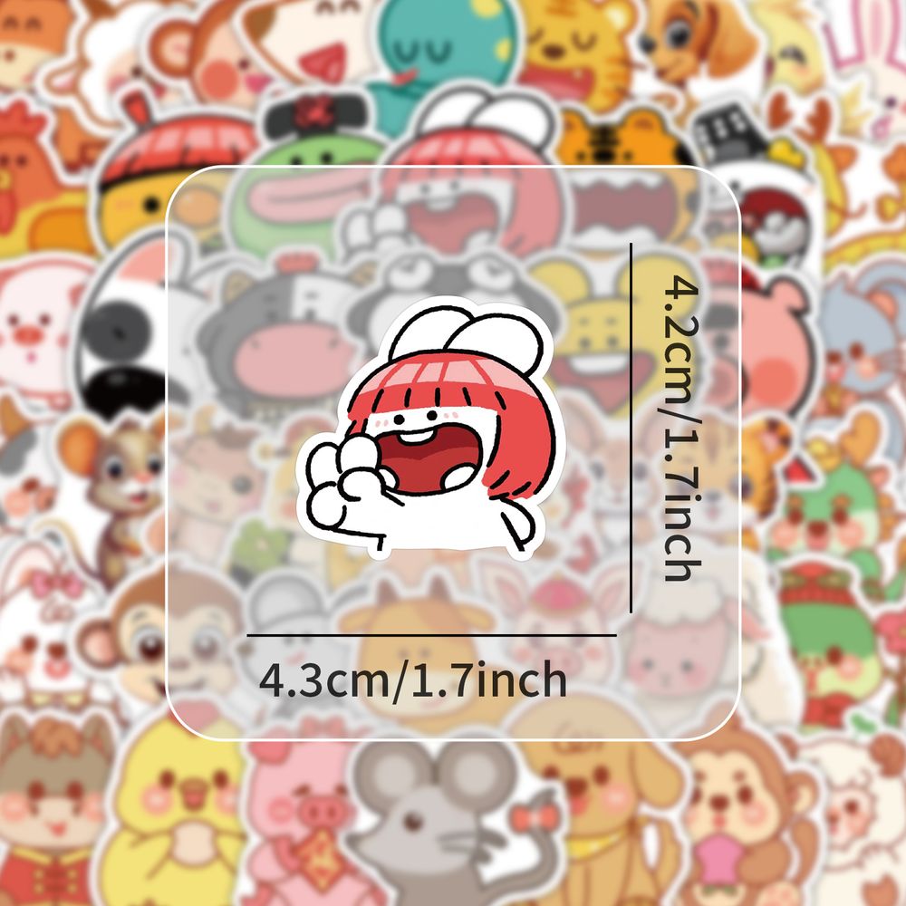 【大图释官方授权】120张十二生肖卡通动物表情创意diy自粘可爱标签装饰贴画书本卡手机壳玩具行李箱防水贴纸 - 大图释旗舰店