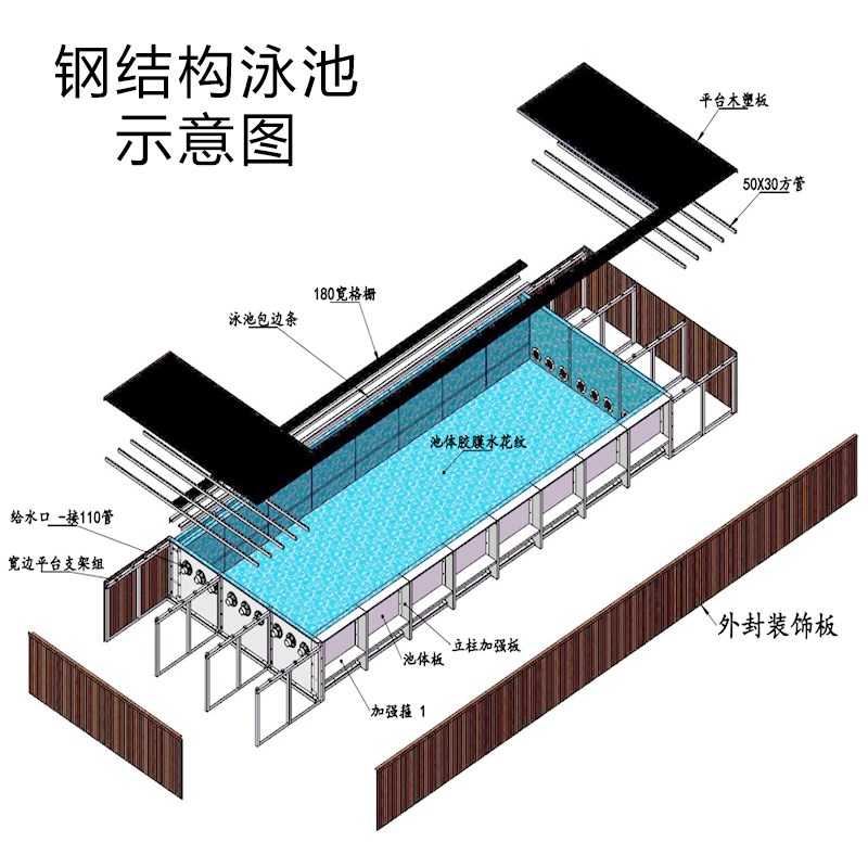 游泳池建造钢结构镀锌钢板拼接可拆卸垫层设计商用恒温泳池工程 - d[s406772915]