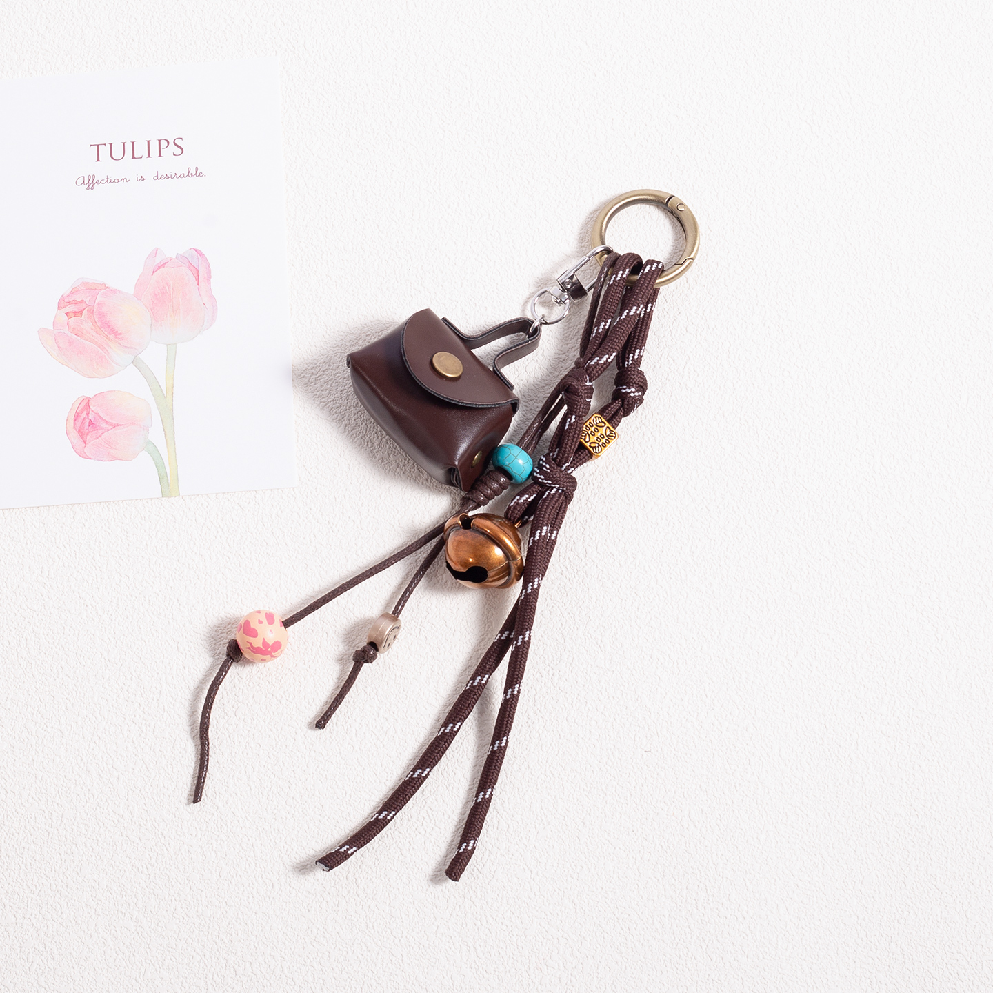 原创设计手作串珠皮牌钥匙绳挂件金属装饰包挂高级感书包背包挂饰 - MAOMIER线上商店