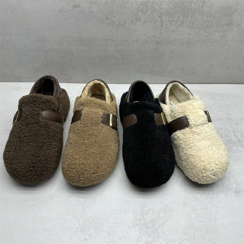断码处理2025冬季新款女鞋舒适百搭圆头加绒保暖平底勃肯鞋毛毛鞋 - 情未草品牌折扣鞋坊