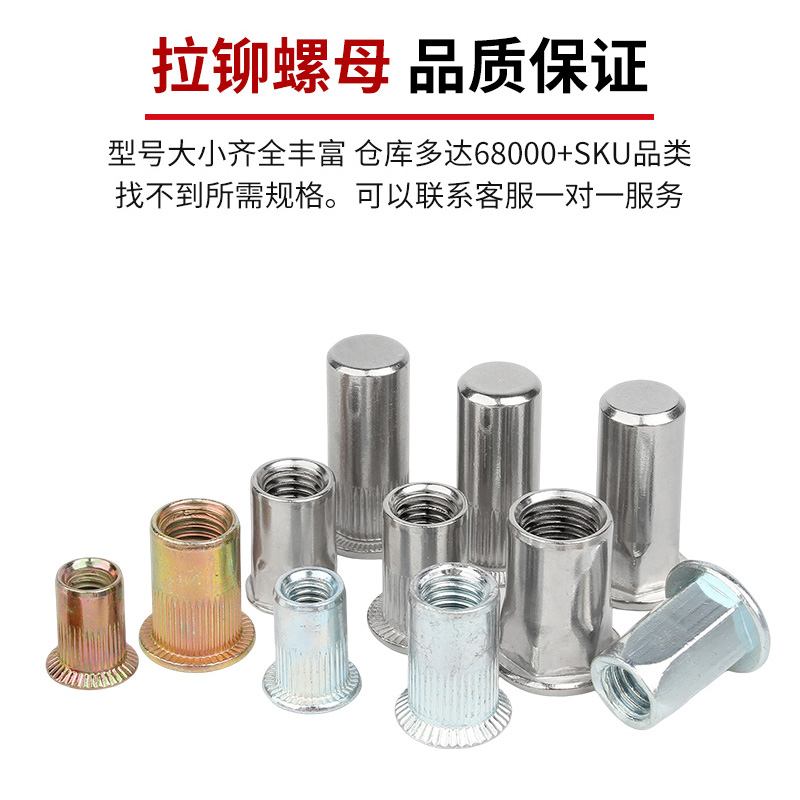 您的位置:他他商城  >  居家  >  304不锈钢拉铆螺母彩锌拉帽滚花平头柱纹铆螺母M3M4M5M6MM8M10M12
