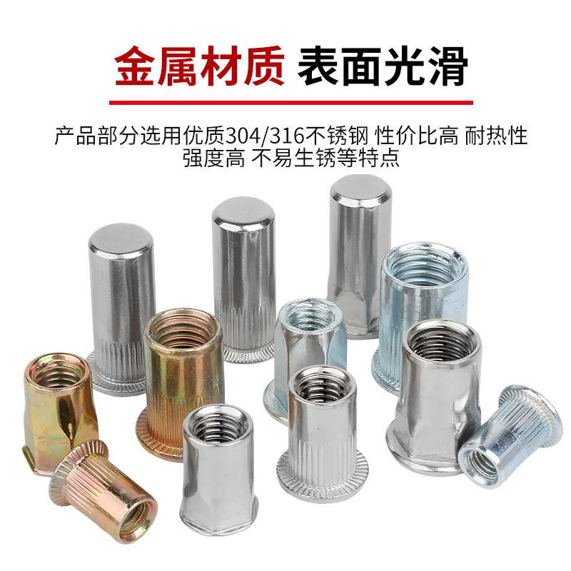 304不锈钢拉铆螺母彩锌拉帽滚花平头柱纹铆螺母M3M4M5M6MM8M10M12 - 固万基官方旗舰店