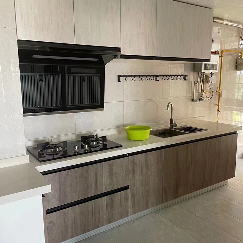 成都实木橱柜整体定制现代简约风厨柜石英石橱柜大理石瓷砖不锈钢
