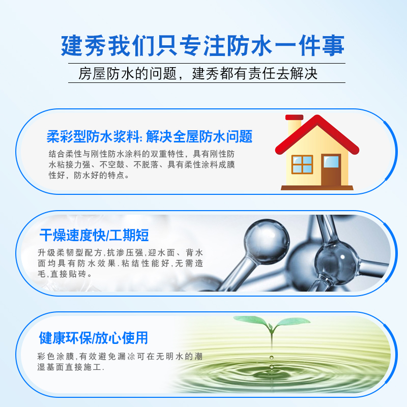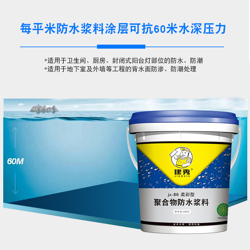 建秀蓝色聚合物防水涂料室w内厨房卫生间墙面地面屋顶补漏柔韧型 - tb5621857427
