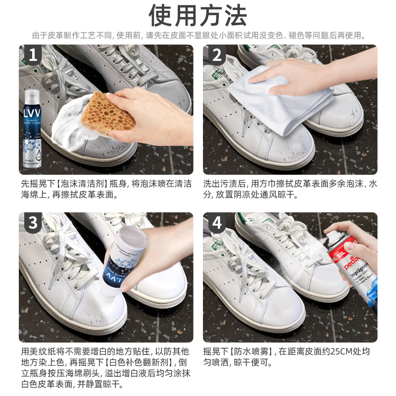 进口小白鞋补色翻新剂白皮鞋清洁护理白鞋真皮磨损修复液白色鞋油 - lvv洗护旗舰店