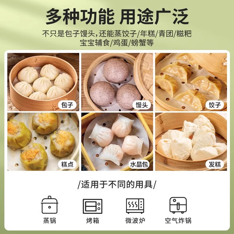 家用一次性蒸笼纸包子纸垫小笼包底纸家用馒头垫蒸馍垫不粘笼屉纸 - 家易购精品百货家居