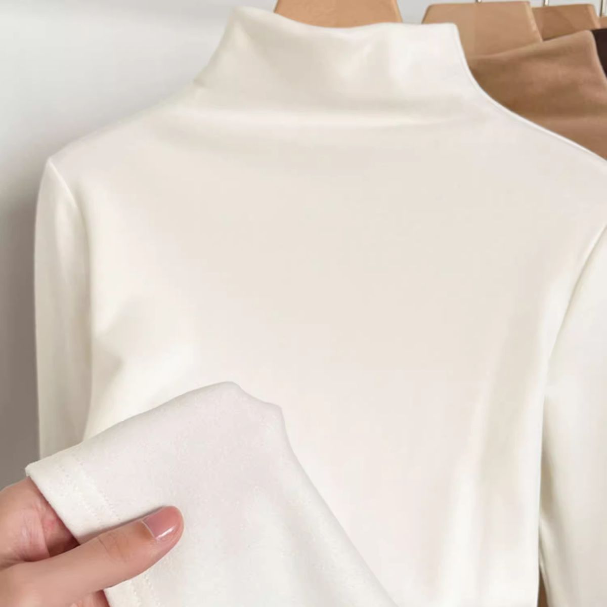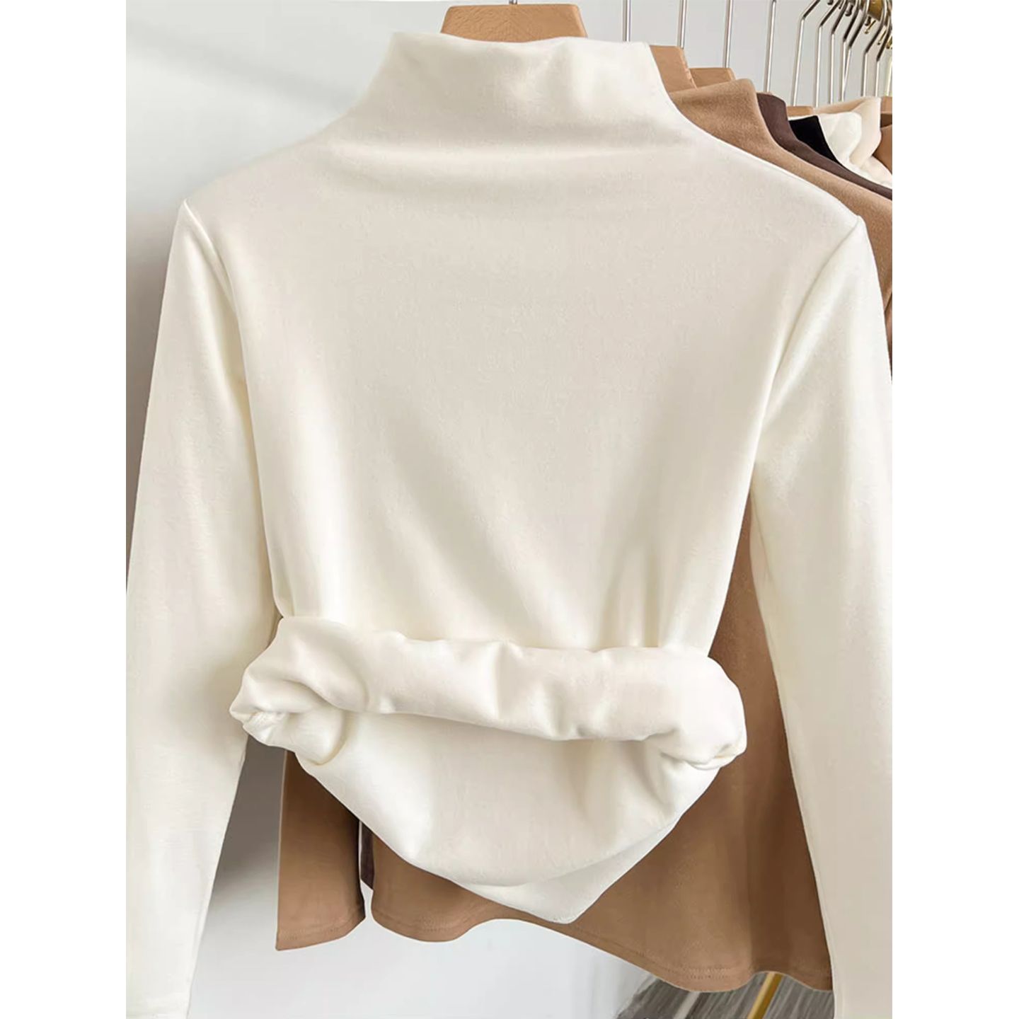 白色双面德绒磨毛加厚半高领长袖保暖百搭打底衫女秋冬修身显瘦 - 木帛初心工厂店