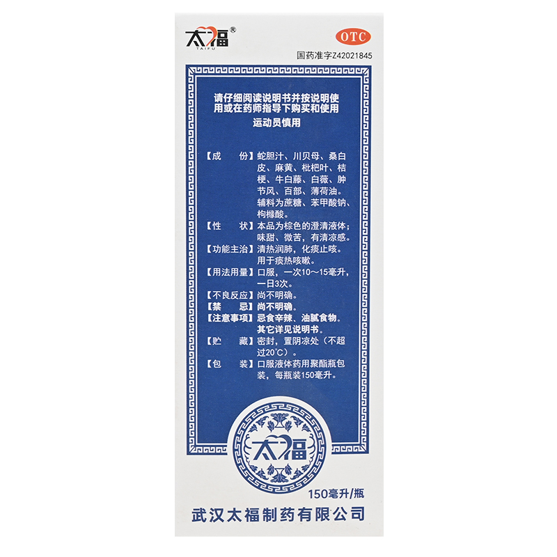 太福 三蛇胆川贝糖浆150ml清热润肺化痰止咳痰热咳嗽国药准字正品 - 弘毅药品专营店
