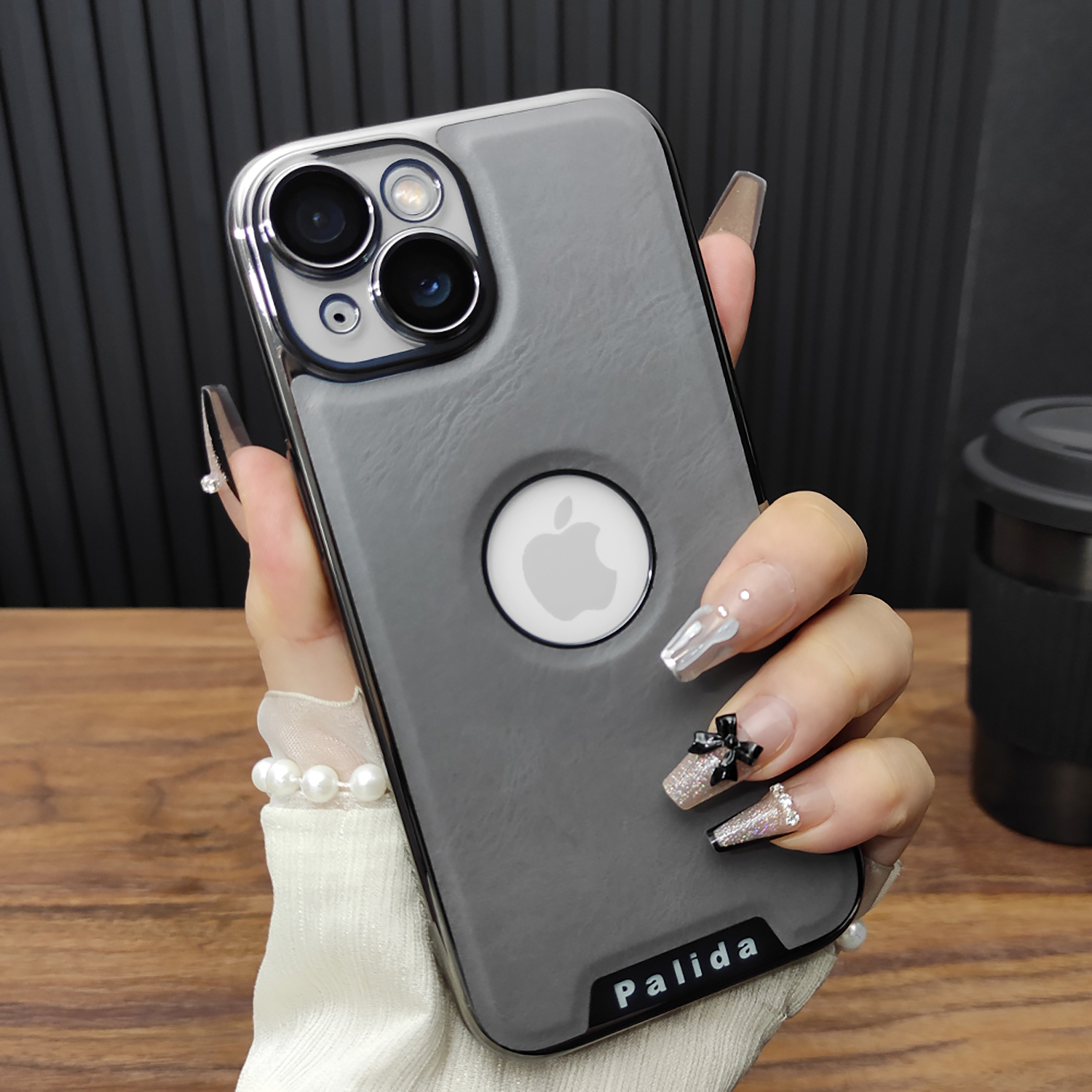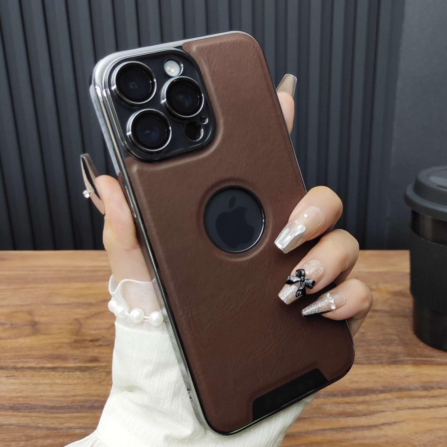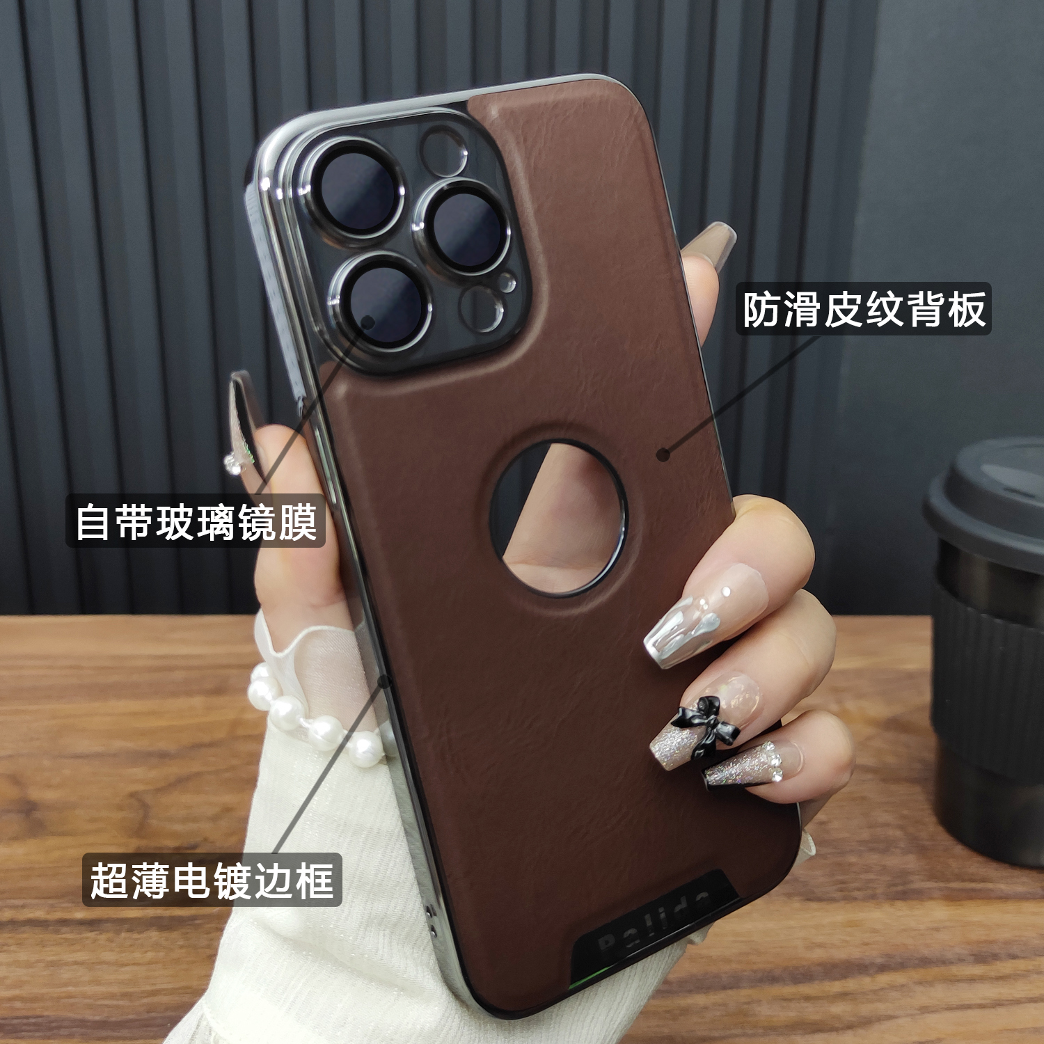 适用苹果16手机壳iPhone15ProMax玻璃镜头膜14皮纹透标13电镀硬壳12超薄防摔全包保护套简约咖啡棕D08 - 左岸工作室