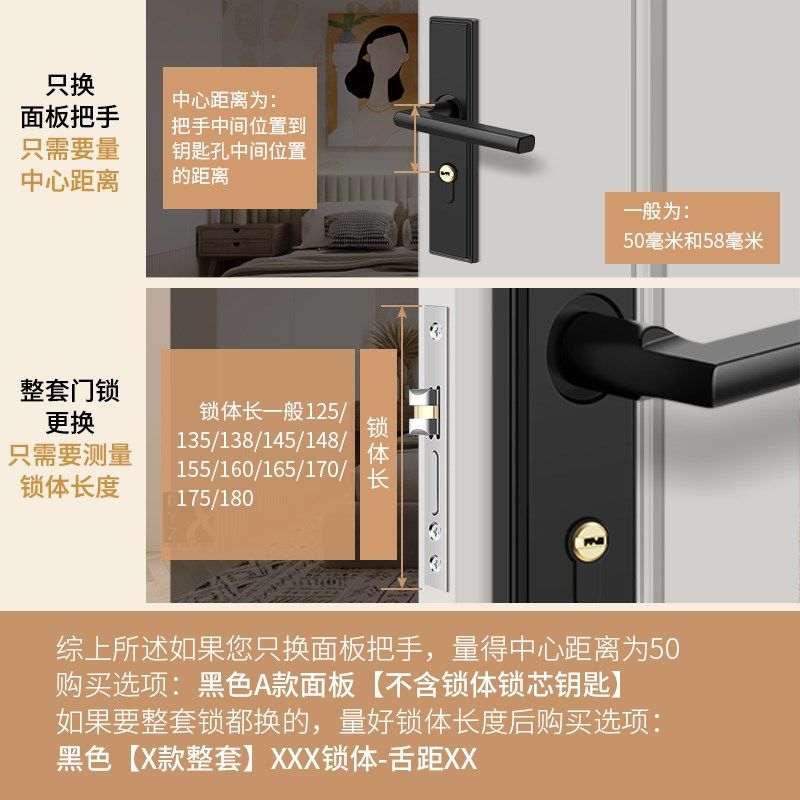 卧室门锁家用通用k型室内房间门木门全套通用老式不锈钢门把手手 - 浩齐生活用品馆5的小店49