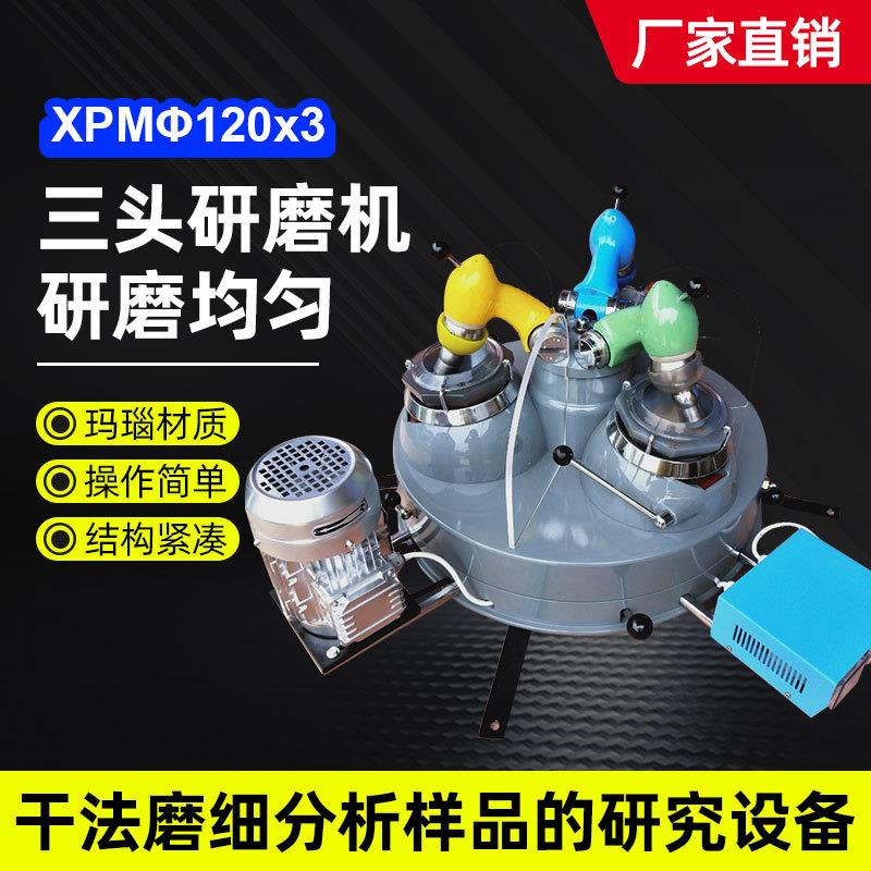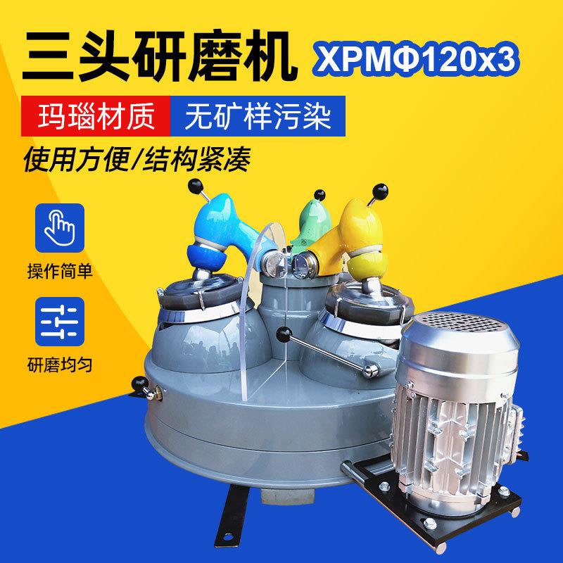 三头研磨机实验室干式玛瑙研磨仪小型选矿粉碎机磨粉设备