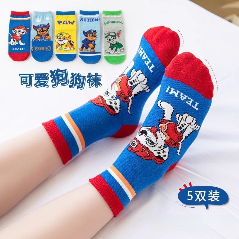 儿童袜子纯棉春秋中筒卡通男孩汪汪队学生宝宝男童棉袜秋冬棉袜 - 哞哞笑倾城