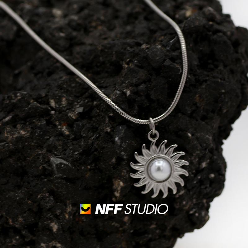 NFF不掉色蛇骨项链小太阳镶嵌珍珠吊坠钛钢时尚流行饰品锁骨链潮 - NiuFaFa Studio轻奢