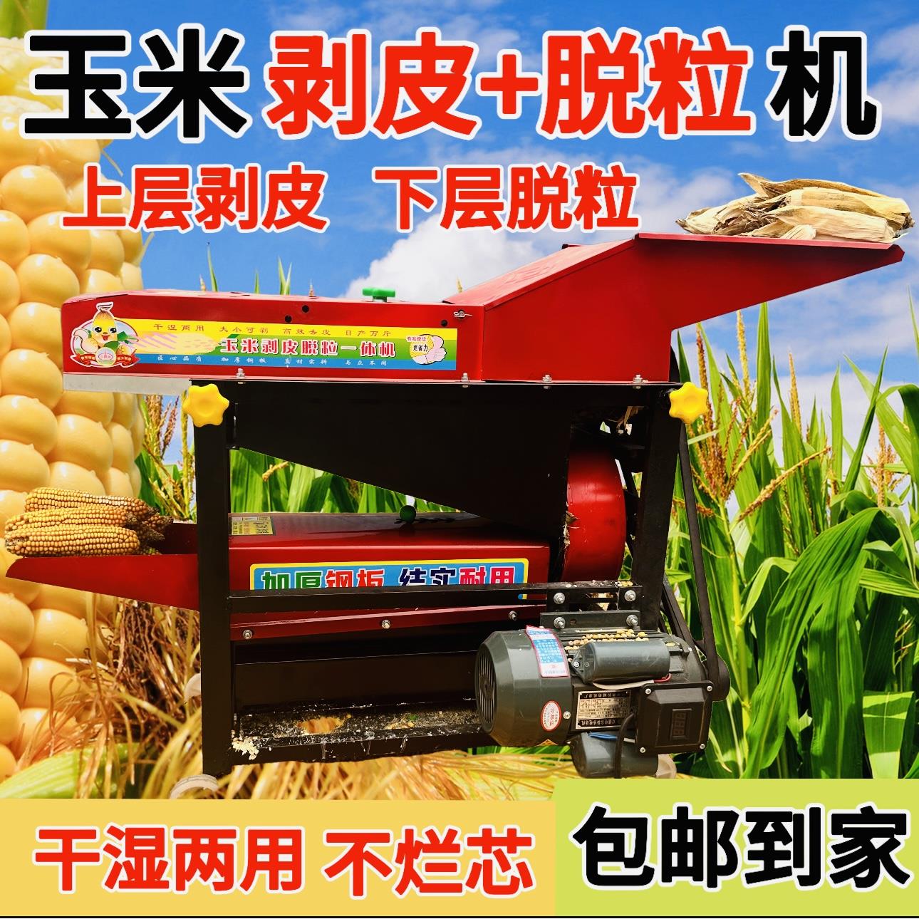 家用新型全自动干湿两用玉米剥皮脱粒一体机包谷撕皮神器去皮利器 - 花宸百货官营店